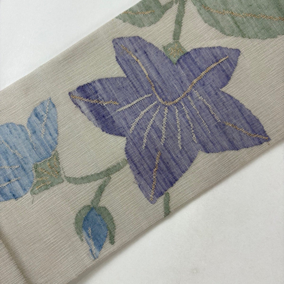 【美品】 名古屋帯 秀品 夏帯 桔梗 金銀糸 灰色 正絹