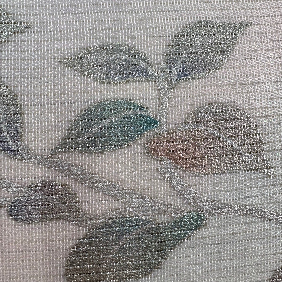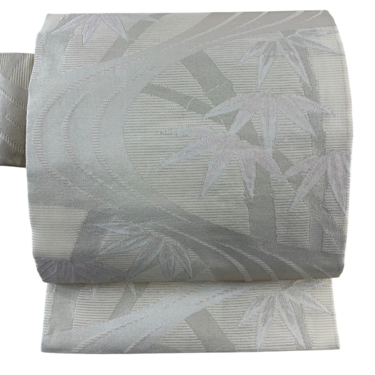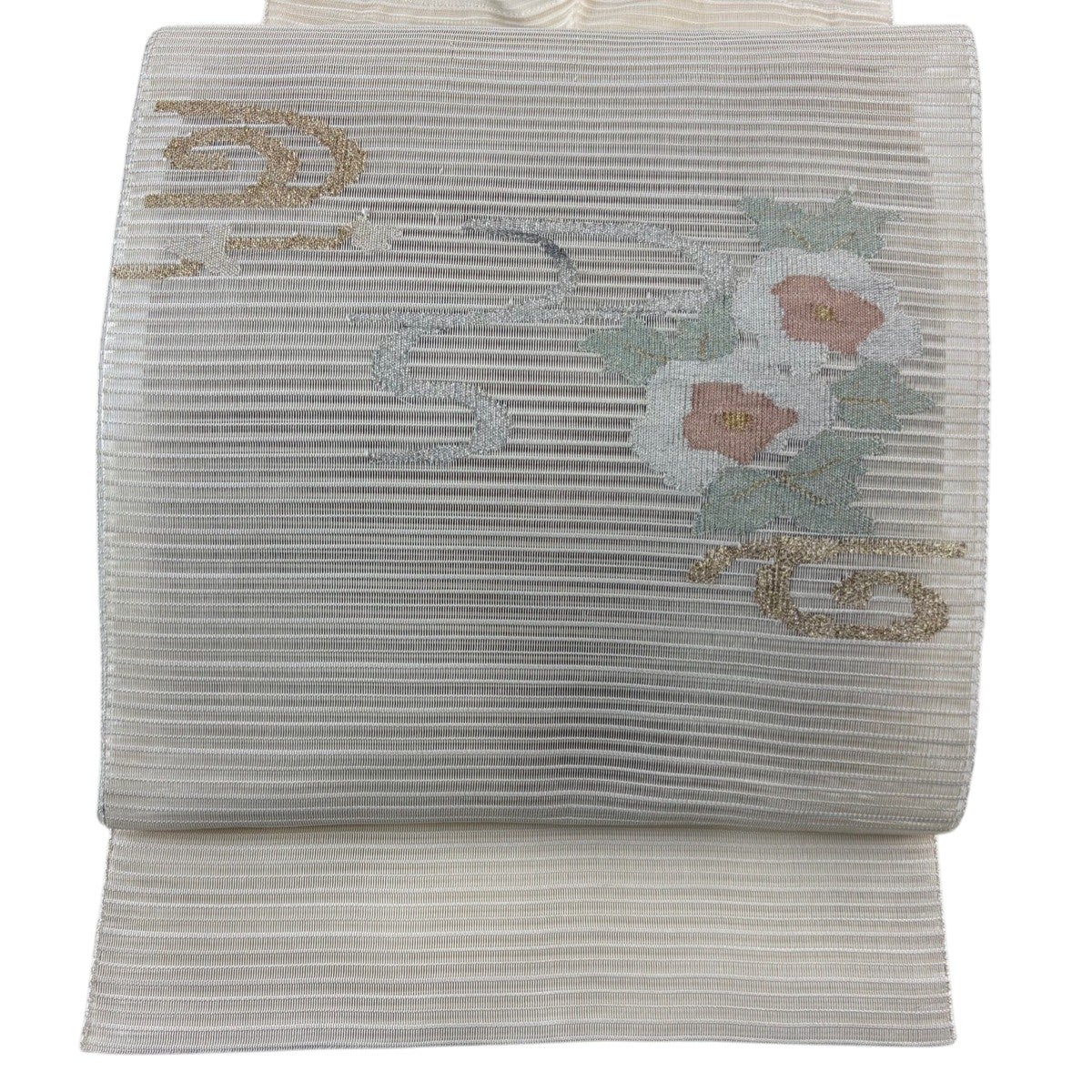 名古屋帯 秀品 草花 霞 銀糸 灰白 正絹