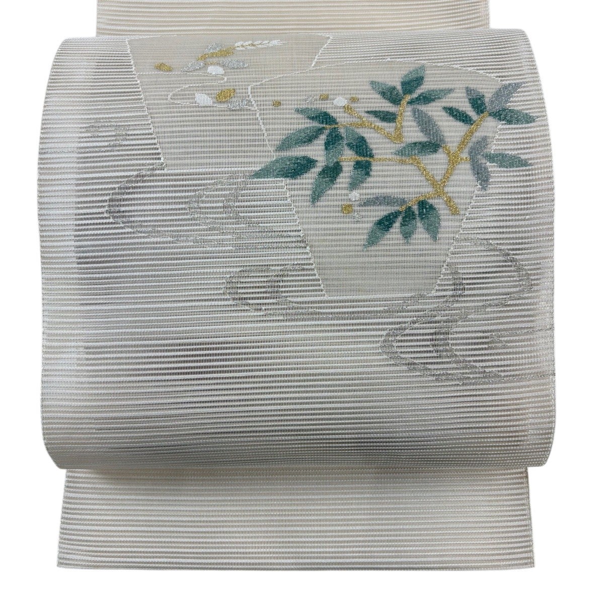 袋帯 秀品 草花 箔 銀色 六通 正絹