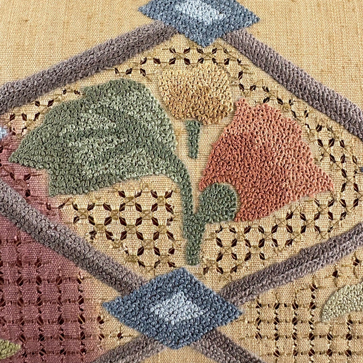 【美品】 名古屋帯 秀品 夏帯 菱 クリーム 正絹