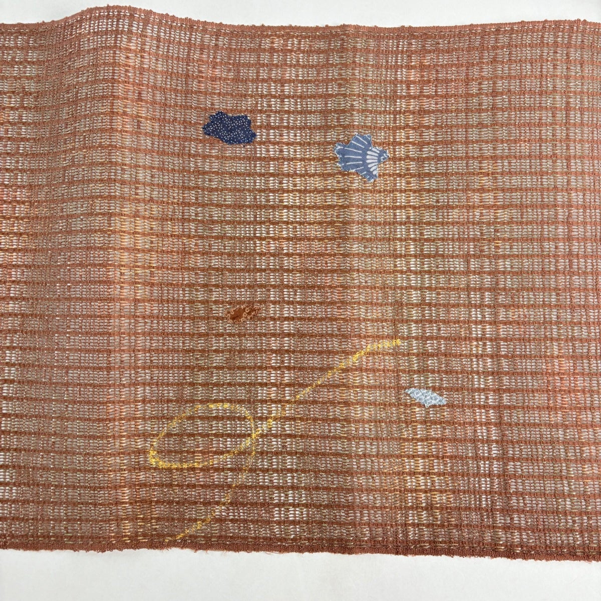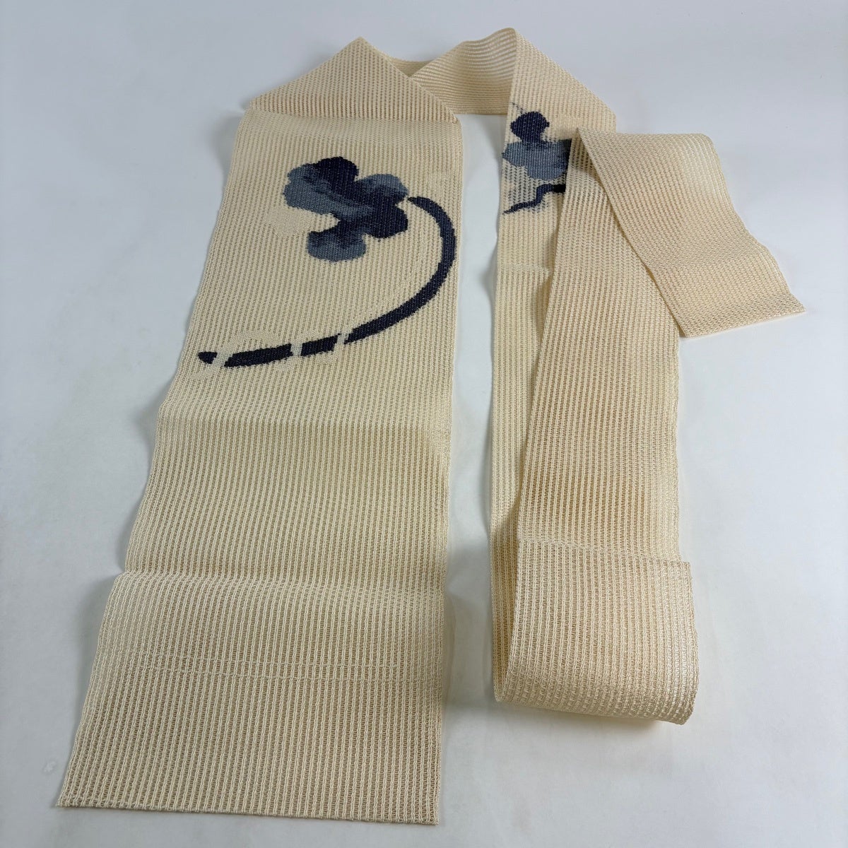 【美品】 名古屋帯 秀品 夏帯 草花 ベージュ 正絹