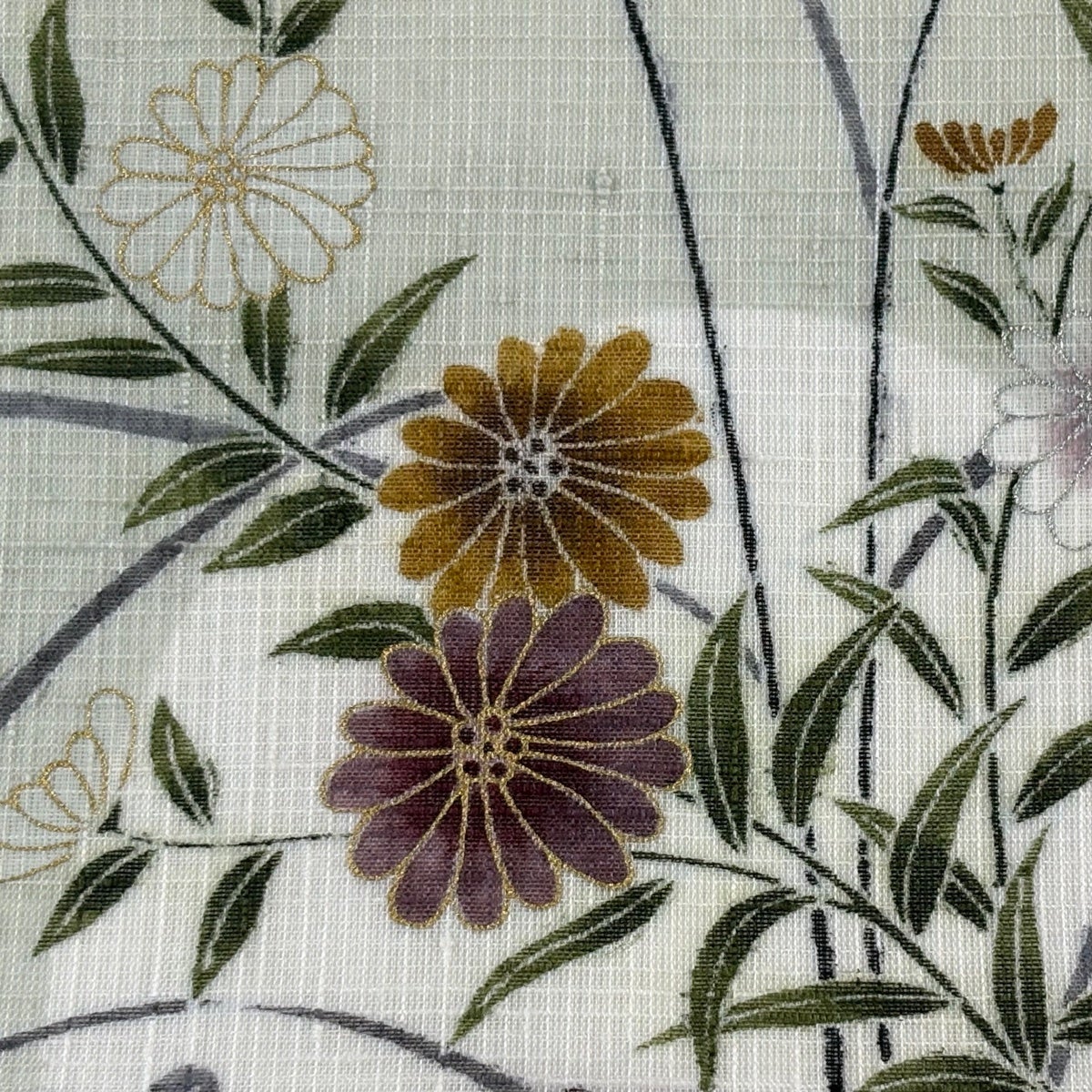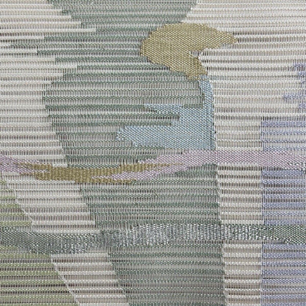 名古屋帯 名品 夏帯 夏紬地 秋草 薄茶色 麻