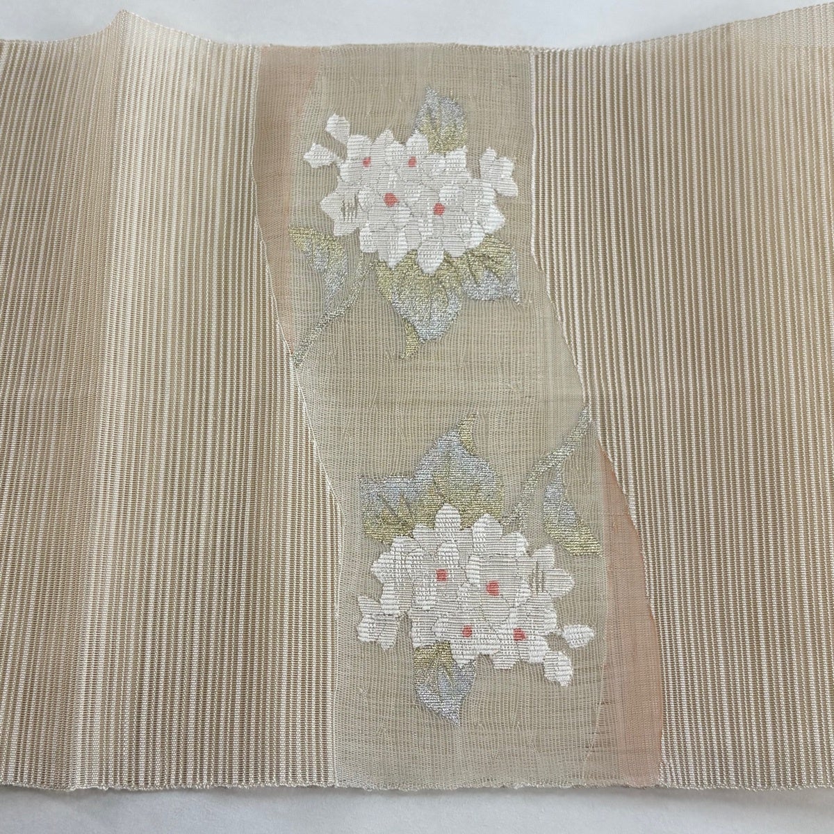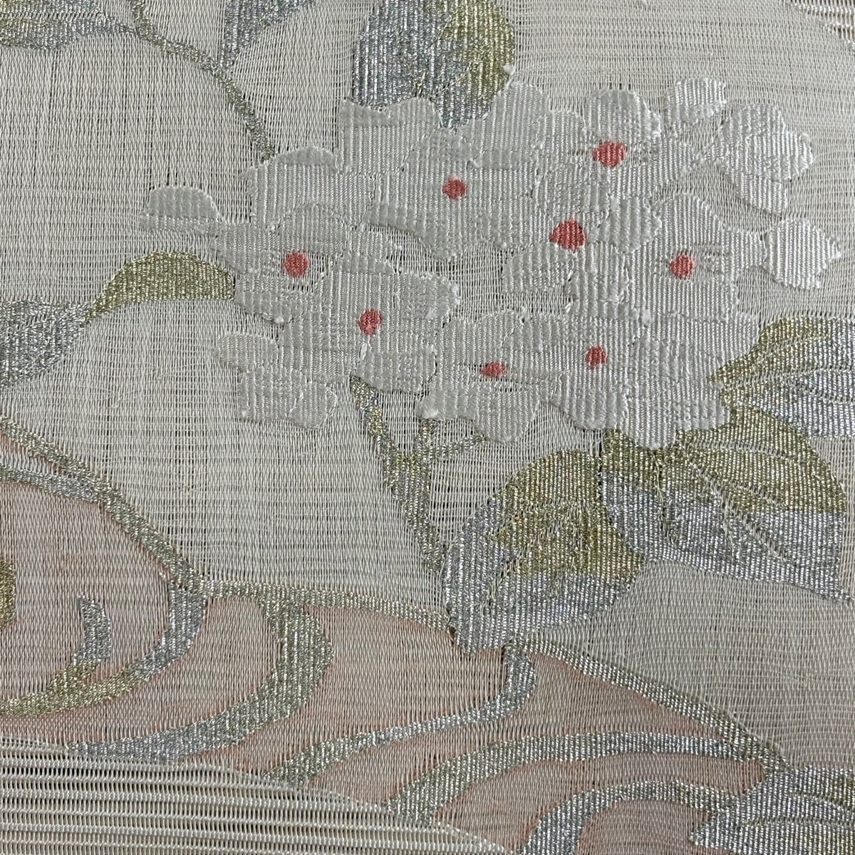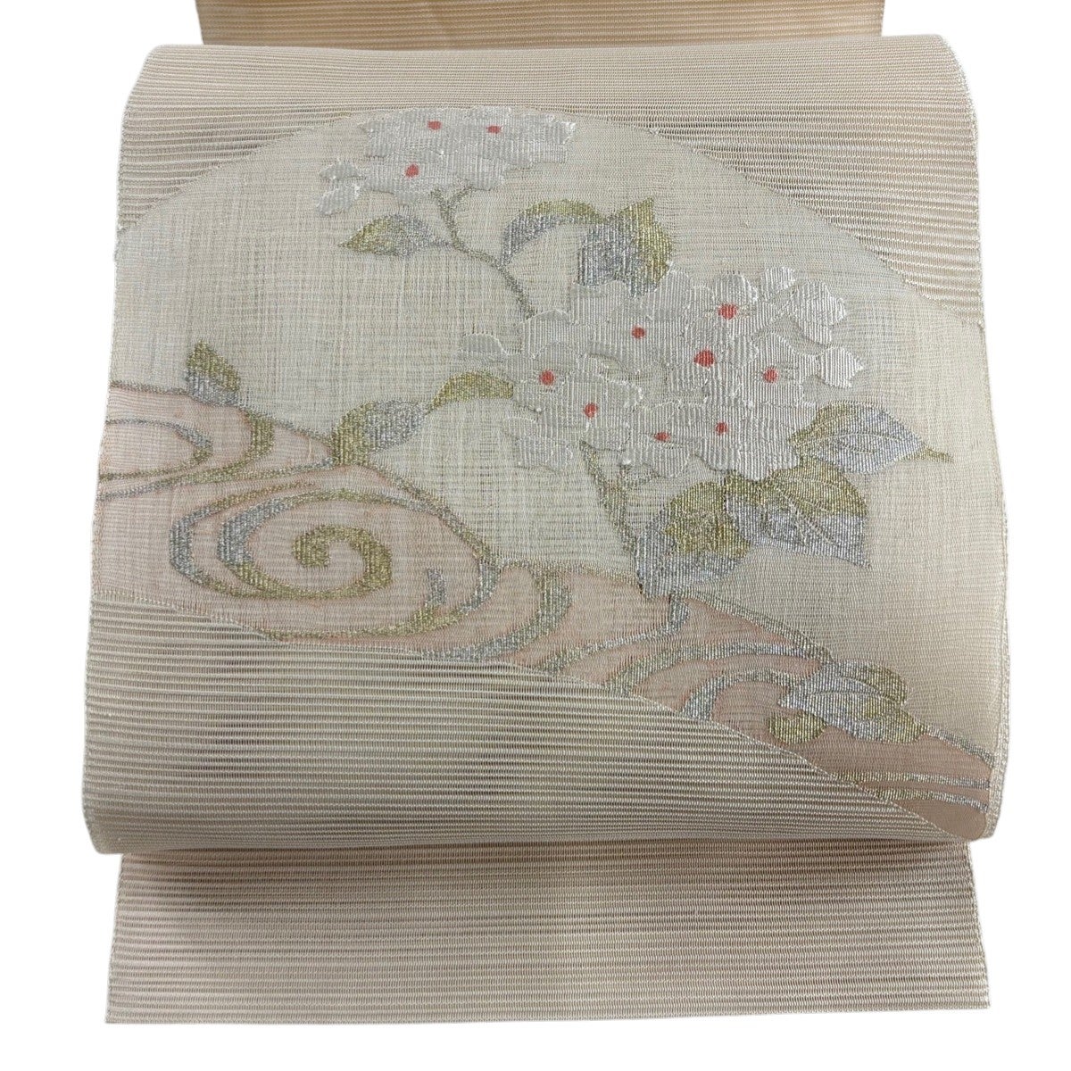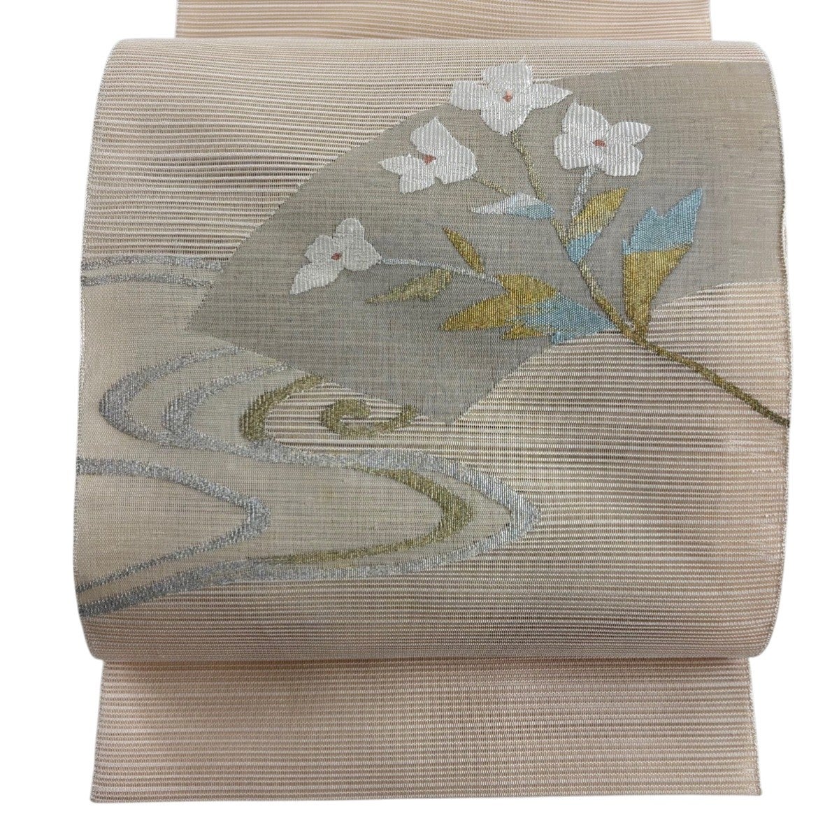 袋帯 秀品 桜 流水 金糸 箔 銀色 六通 正絹