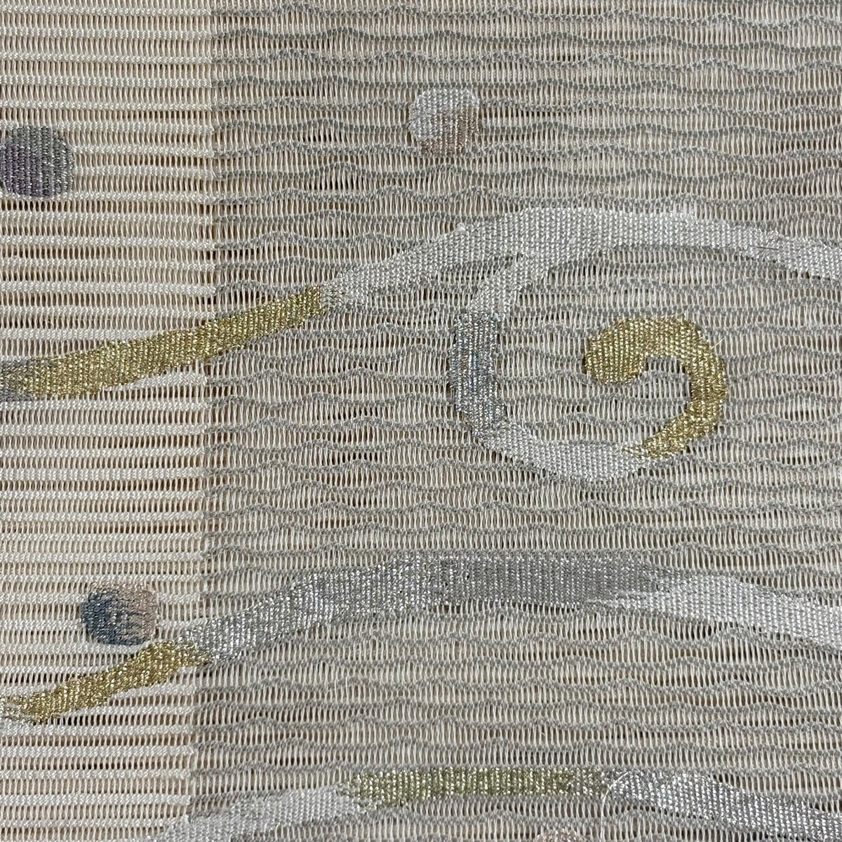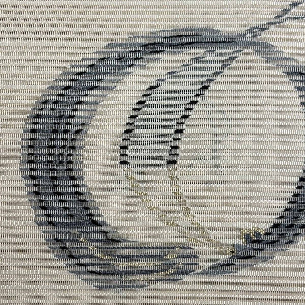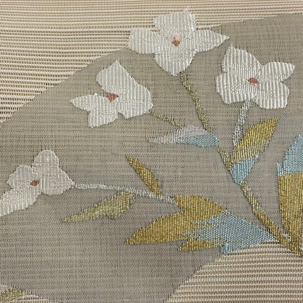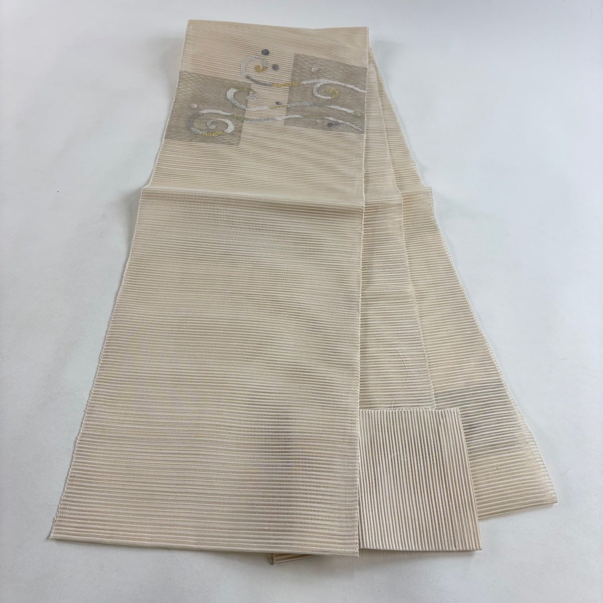 袋帯 名品 夏帯 幾何学模様 段縞 金銀糸 クリーム 六通 正絹