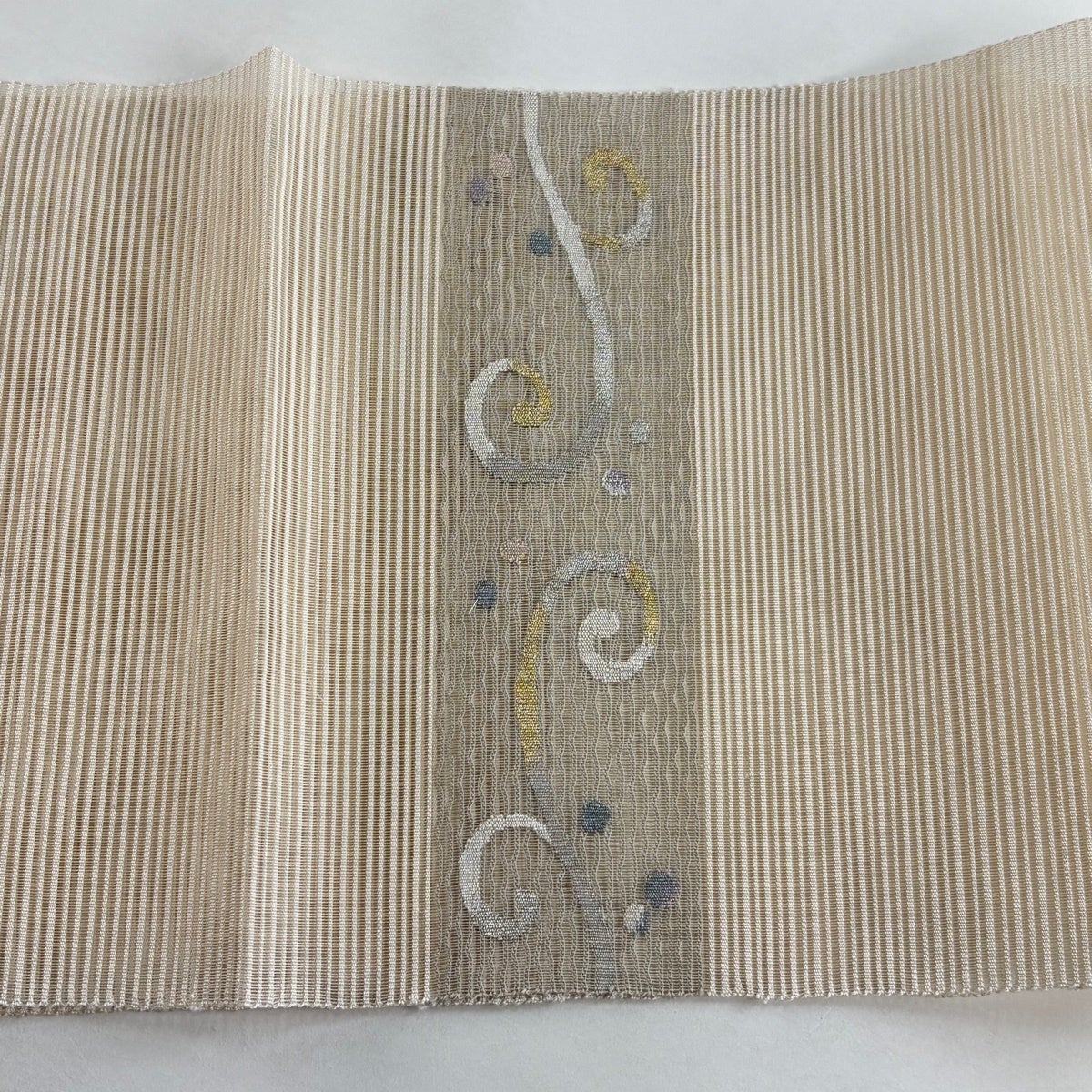 名古屋帯 名品 夏帯 夏紬地 沢蟹 海老 ベージュ 麻