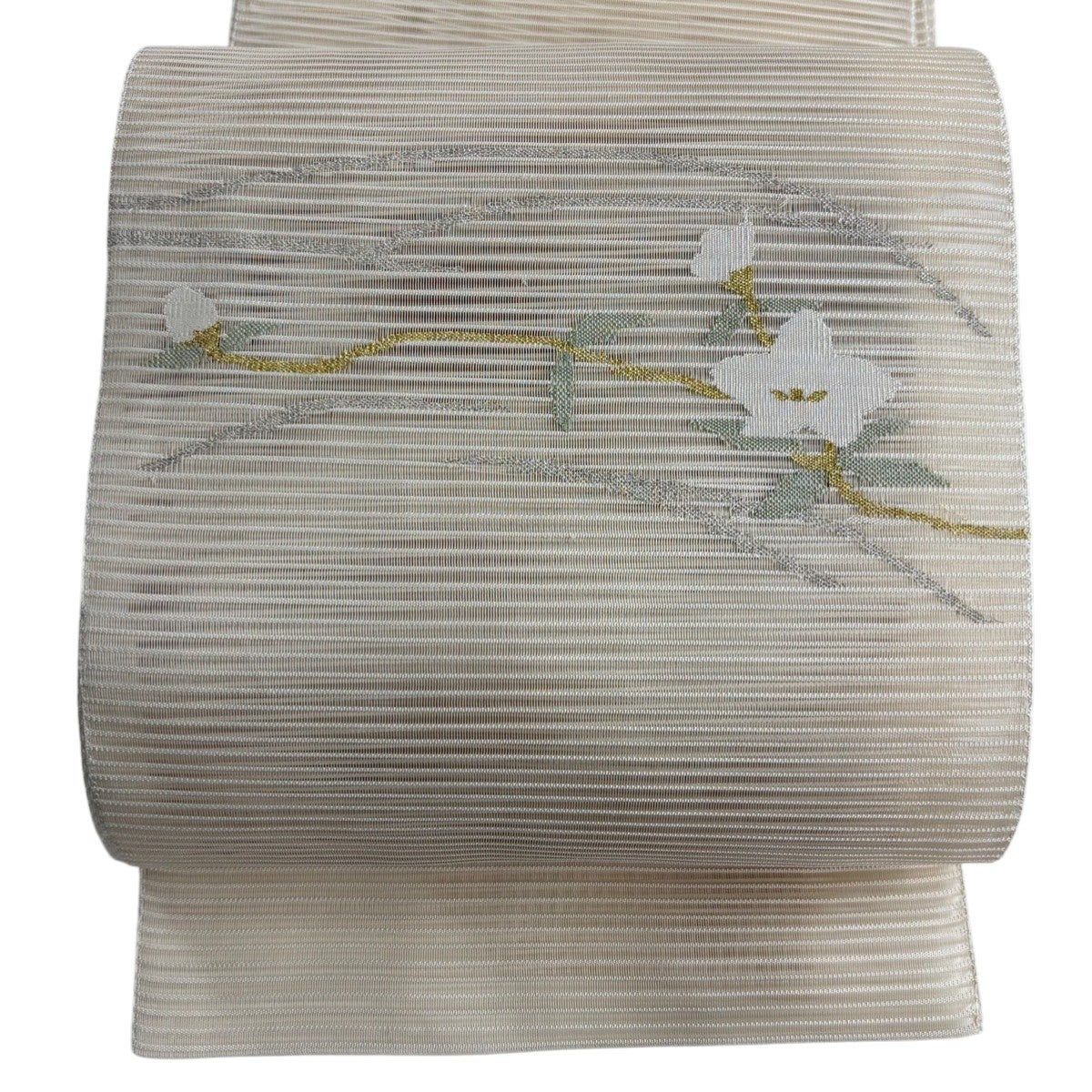 名古屋帯 名品 夏帯 葉柄 クリーム 正絹