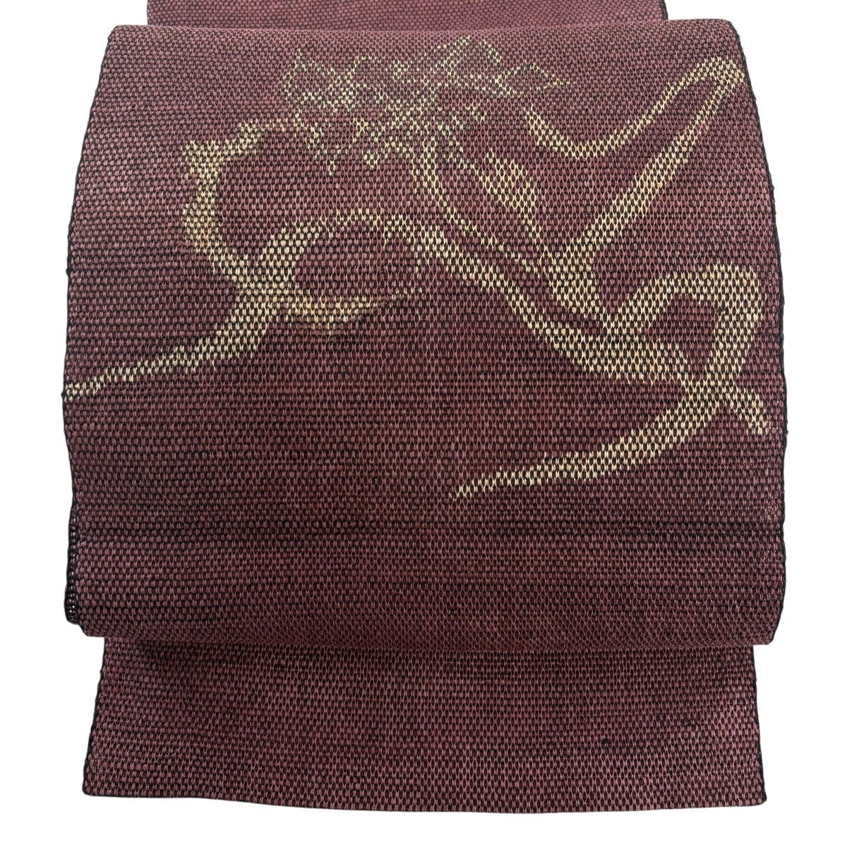 名古屋帯 優品 夏帯 八寸名古屋帯 松葉仕立て トンネル仕立て 草花 小豆色 正絹