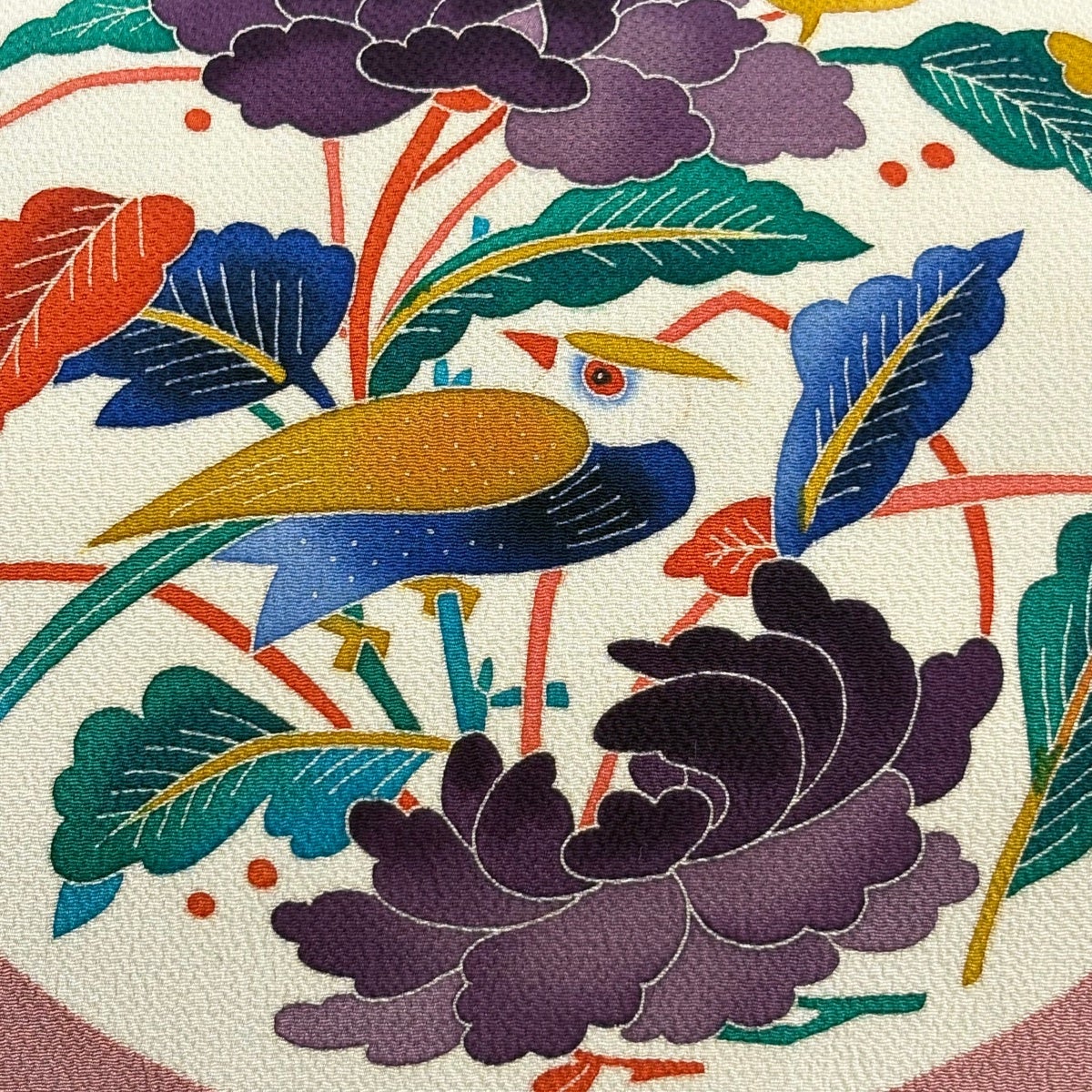 【美品】 名古屋帯 逸品 草花 丸文 金糸 クリーム 正絹