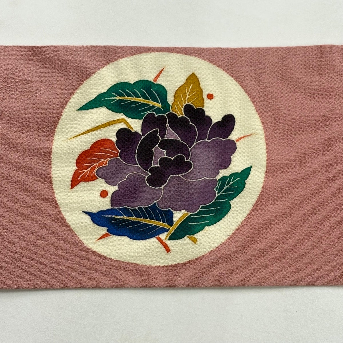 名古屋帯 逸品 花籠 うさぎ 金彩 縮緬 紫 正絹