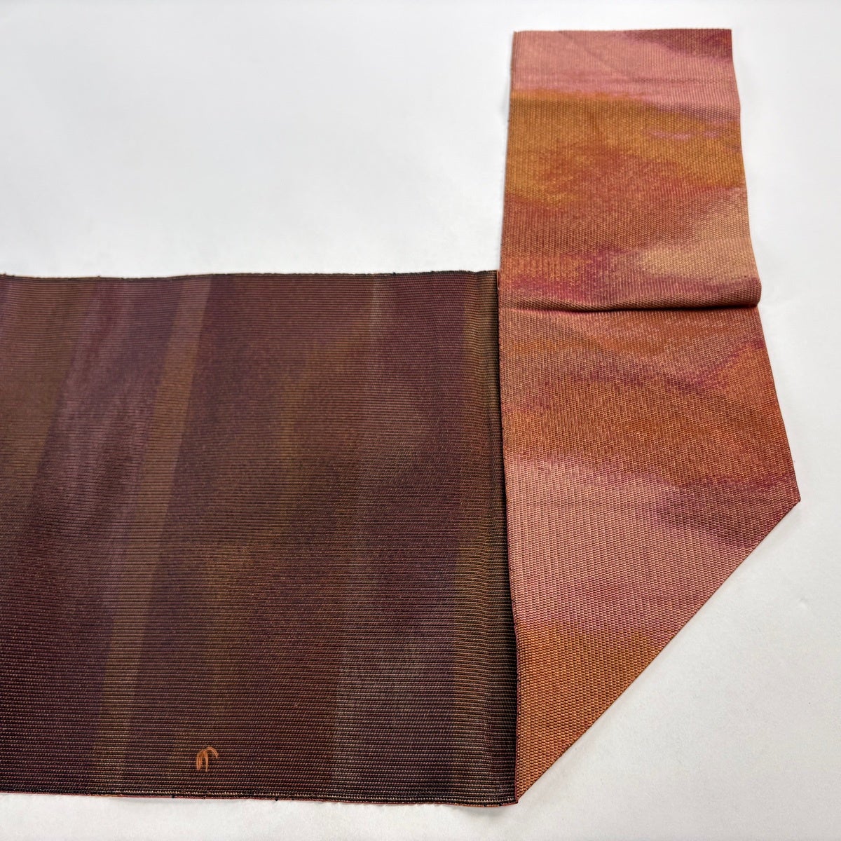 【美品】 名古屋帯 名品 八寸名古屋帯 松葉仕立て 霞 金糸 赤茶 正絹