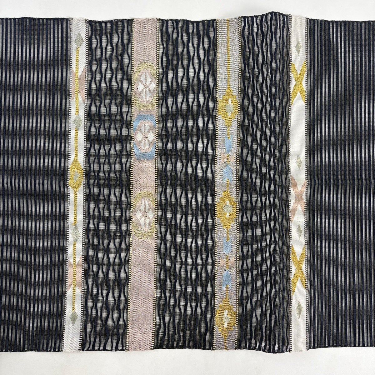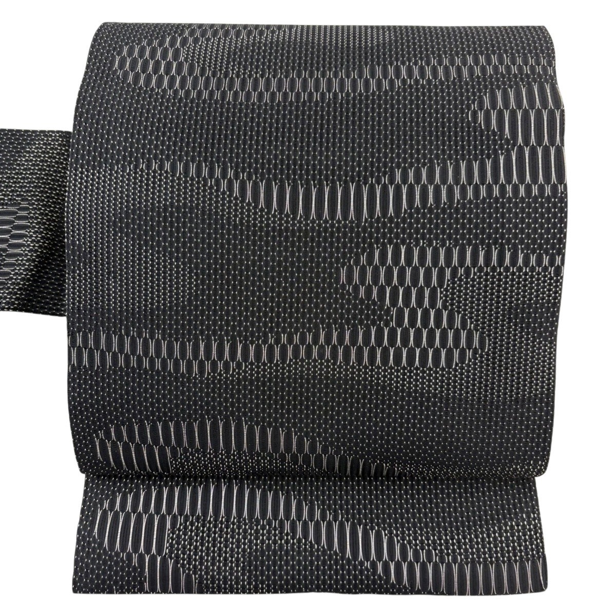 【美品】 名古屋帯 秀品 夏帯 霞 幾何学模様 黒 正絹