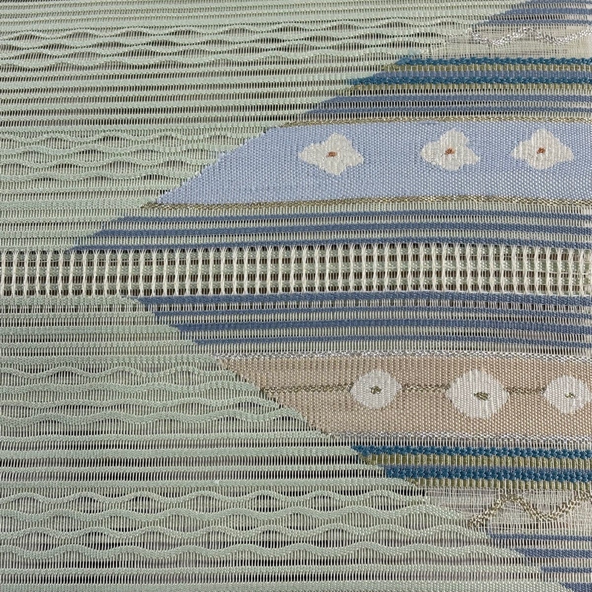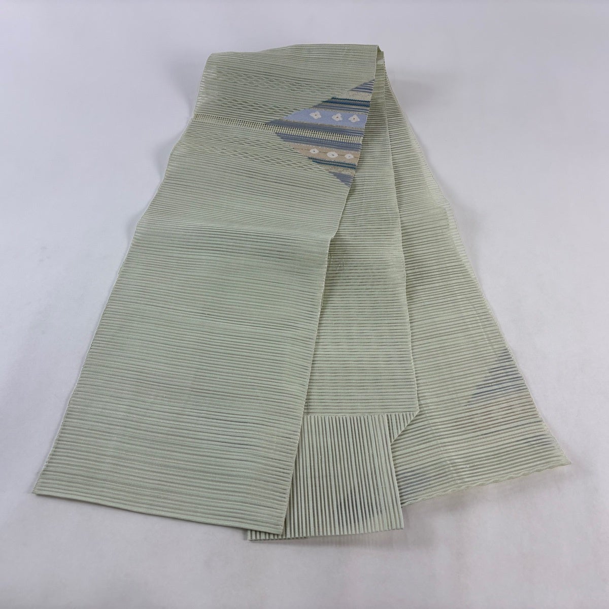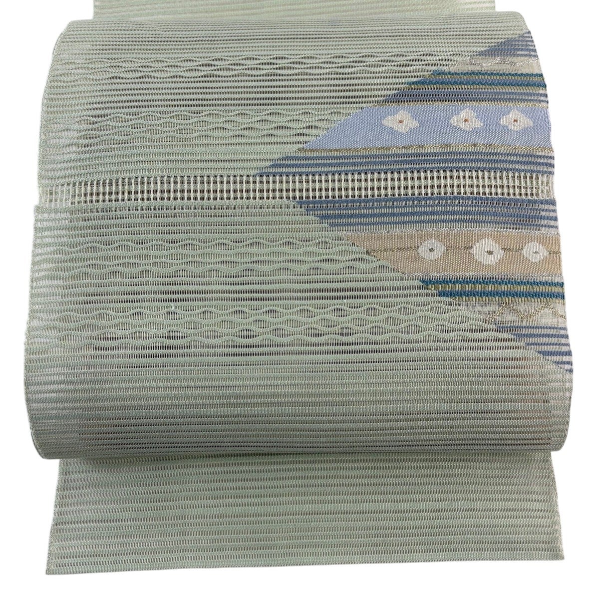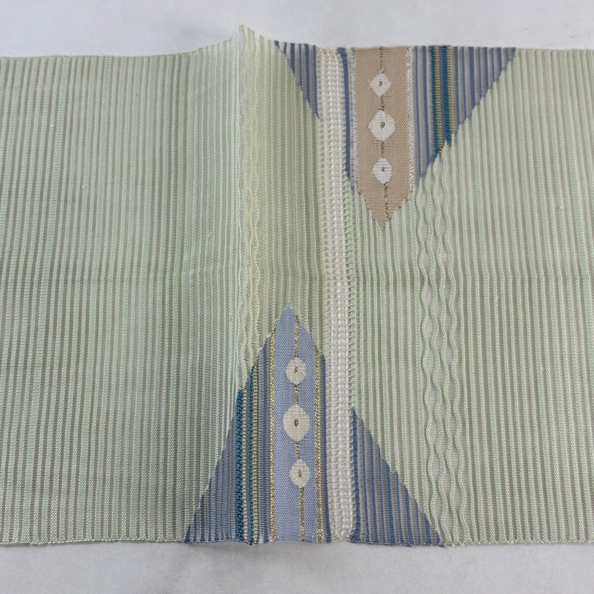 名古屋帯 秀品 夏帯 八寸名古屋帯 松葉仕立て トンネル仕立て 幾何学 羅織 薄緑 正絹