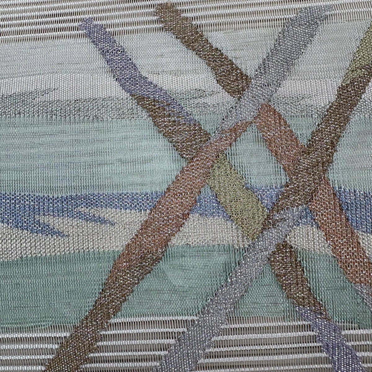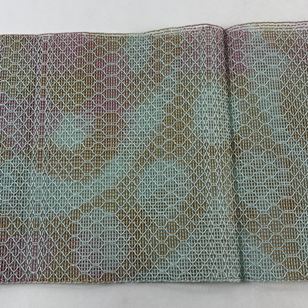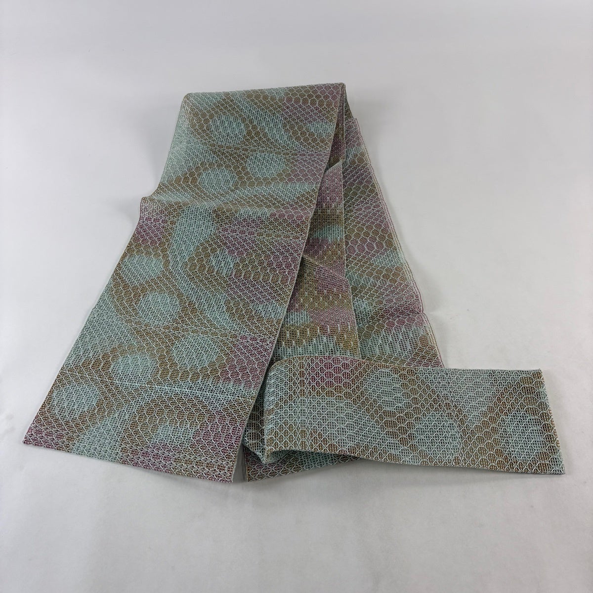 名古屋帯 秀品 夏帯 八寸名古屋帯 松葉仕立て トンネル仕立て 幾何学 羅織 薄緑 正絹