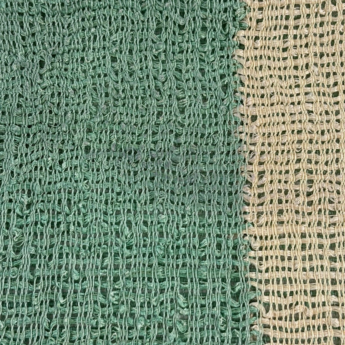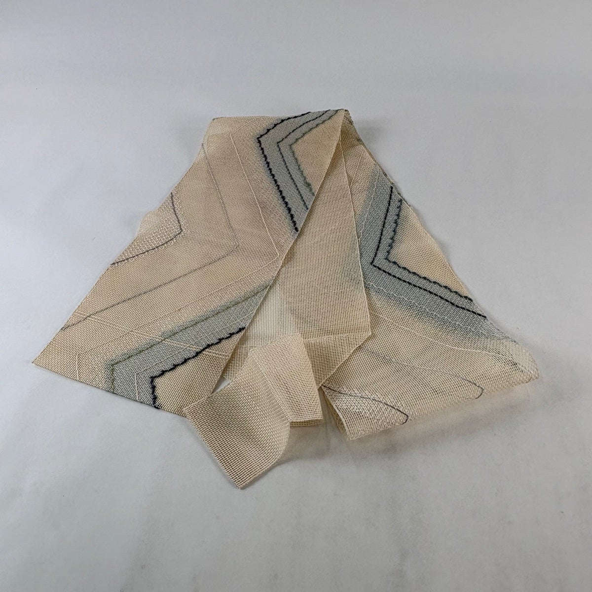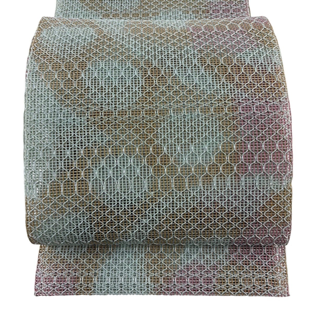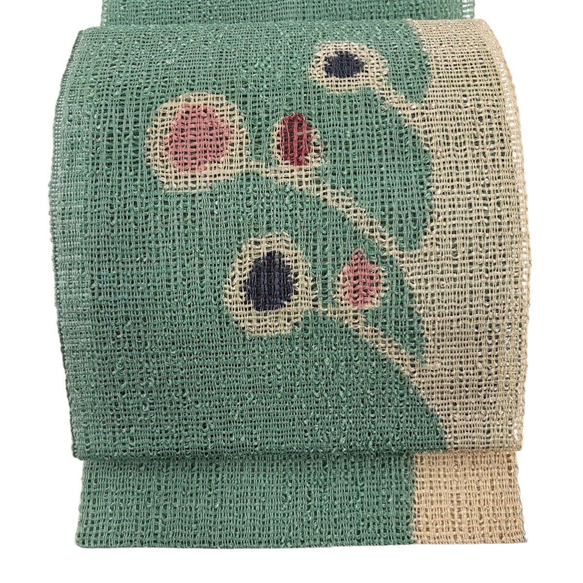 名古屋帯 秀品 夏帯 八寸名古屋帯 松葉仕立て トンネル仕立て 幾何学 羅織 薄緑 正絹