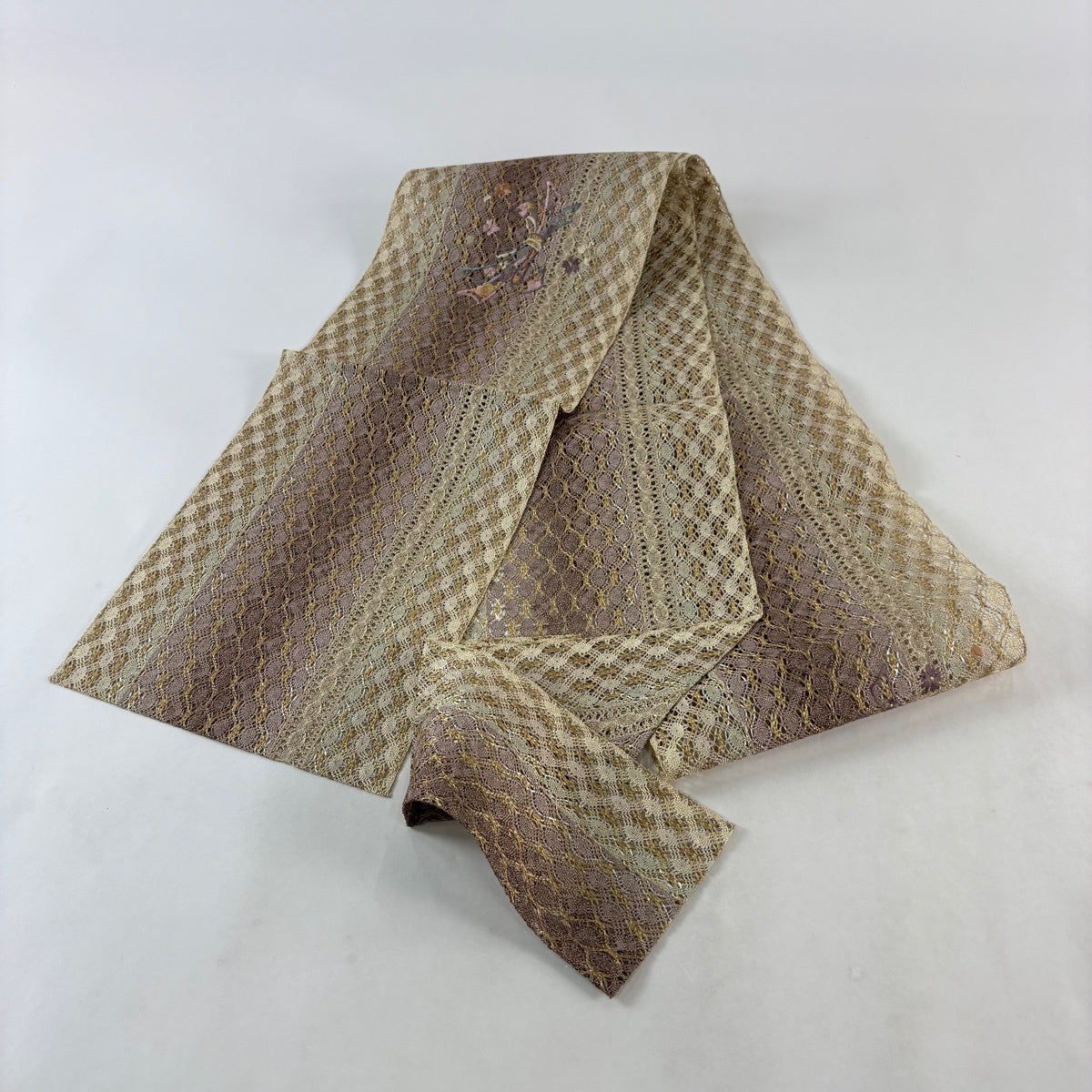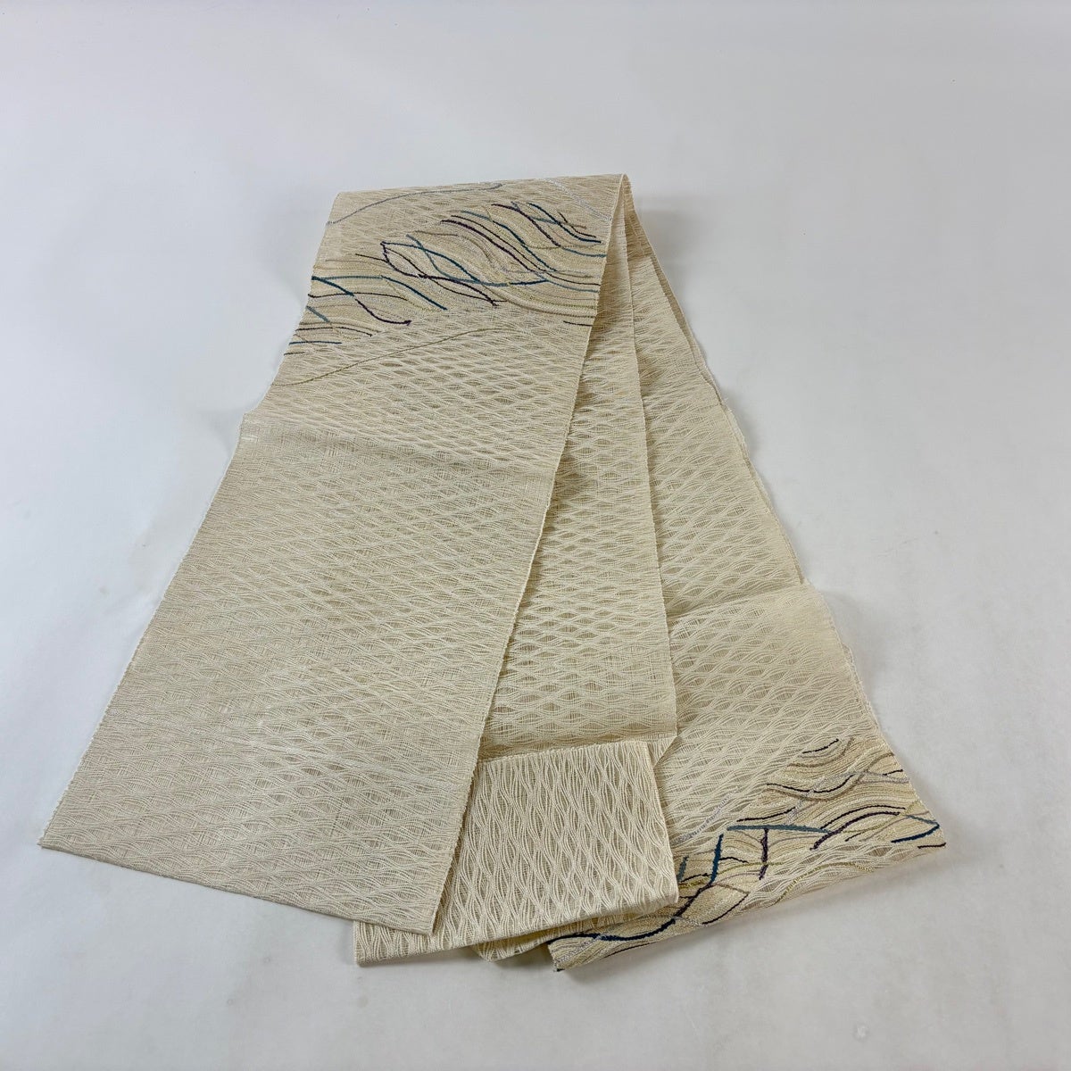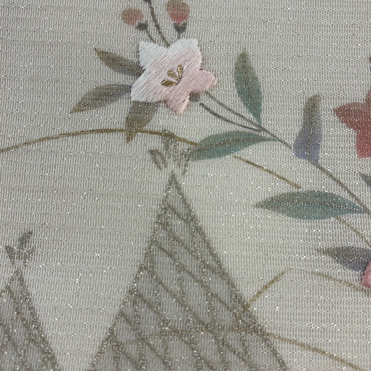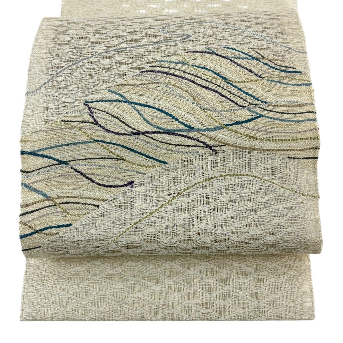 名古屋帯 秀品 夏帯 絽 桔梗 網干 刺繍 箔 クリーム 正絹