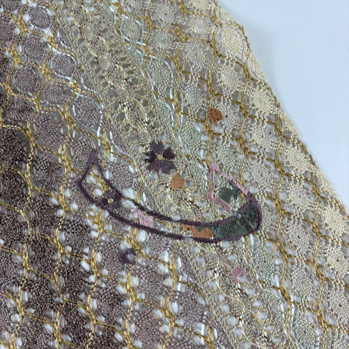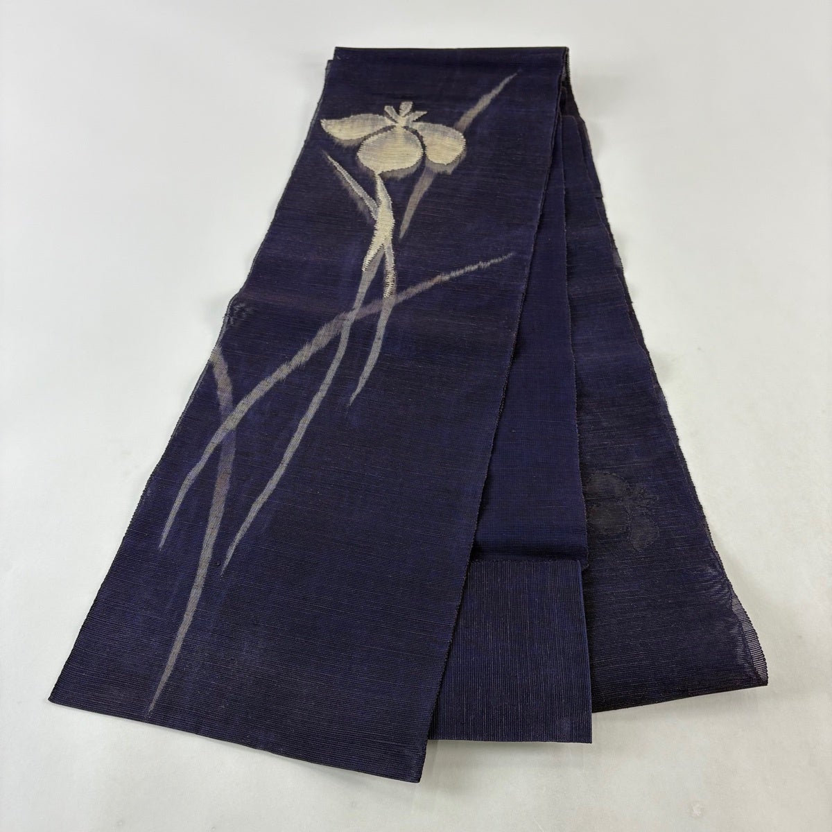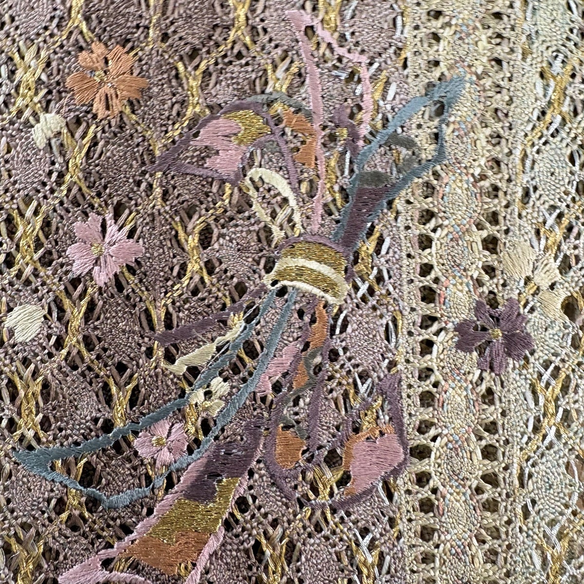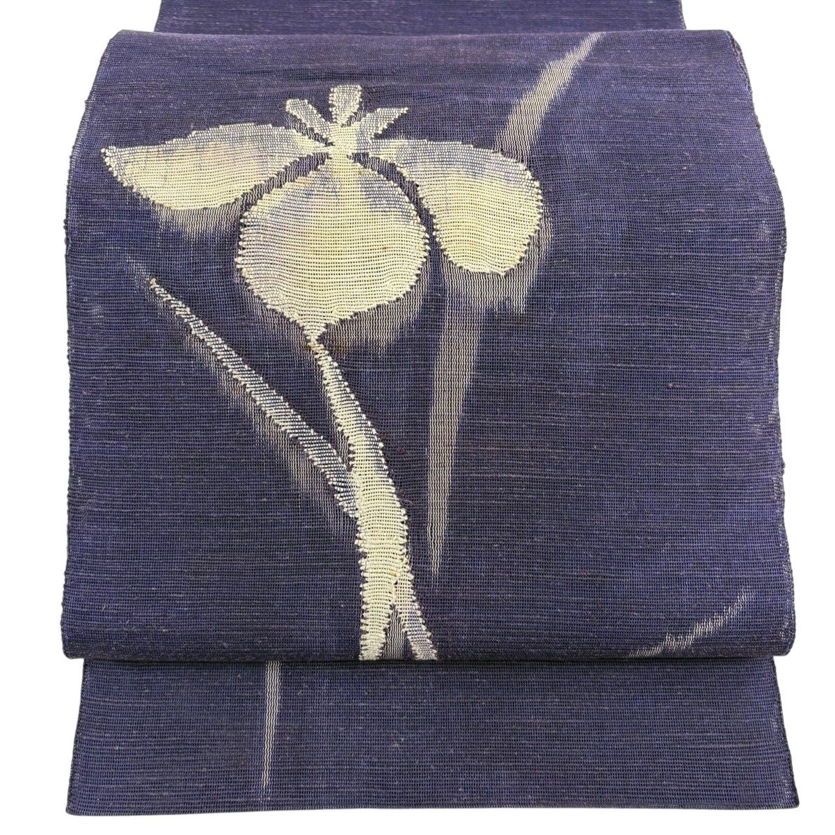名古屋帯 秀品 夏帯 絽 桔梗 網干 刺繍 箔 クリーム 正絹
