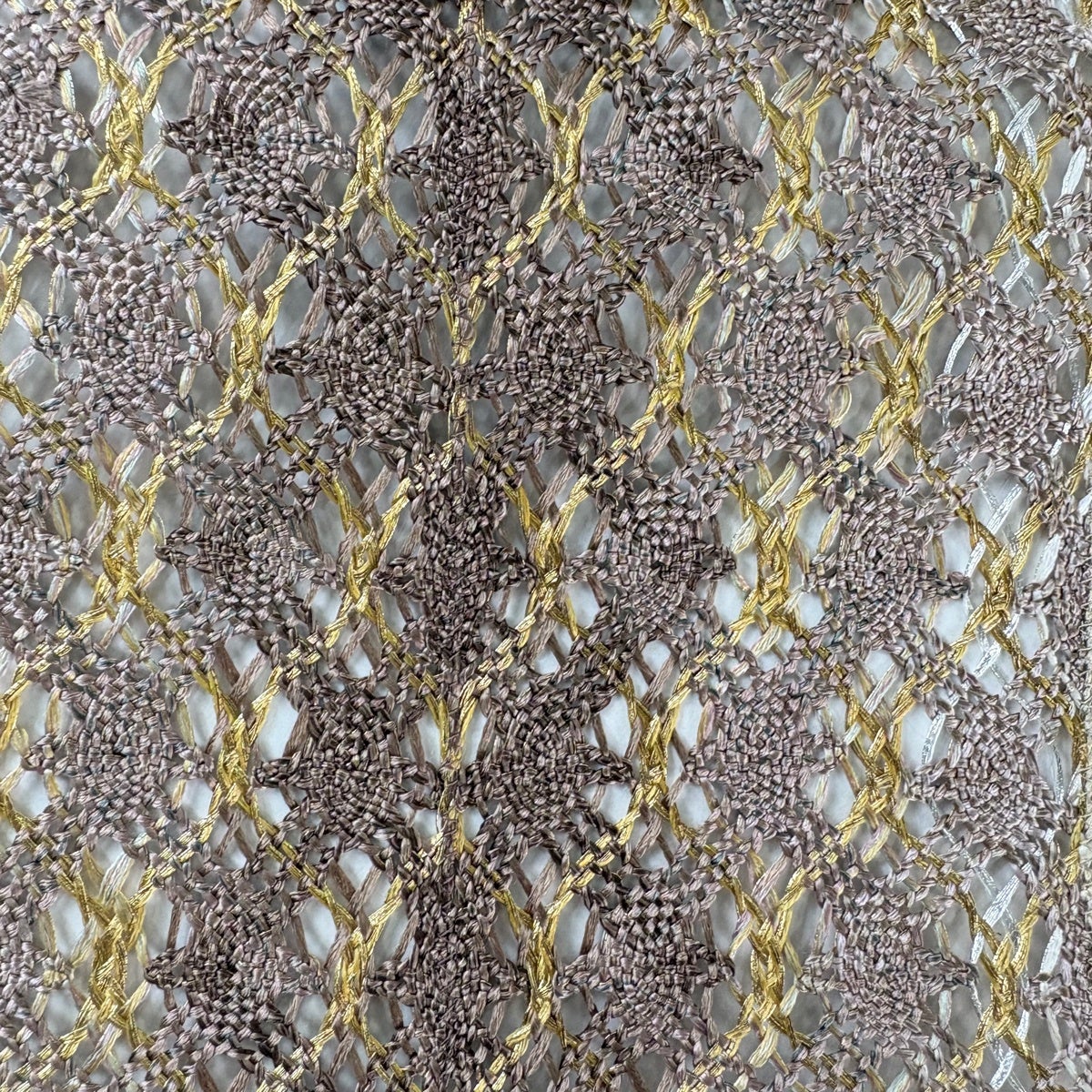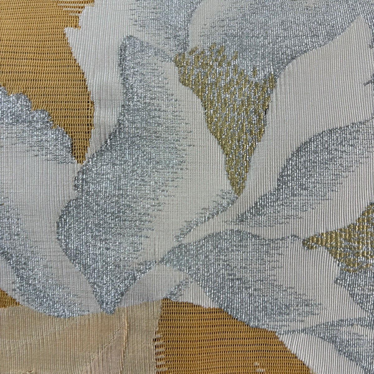 【美品】 名古屋帯 秀品 夏帯 幾何学模様 金銀糸 山吹茶色 正絹