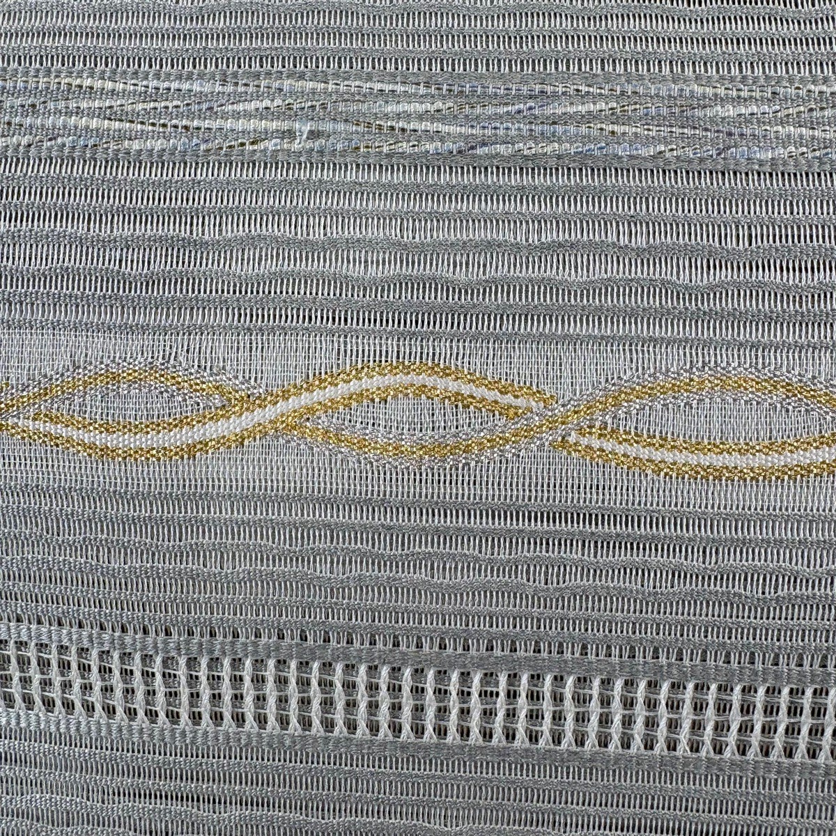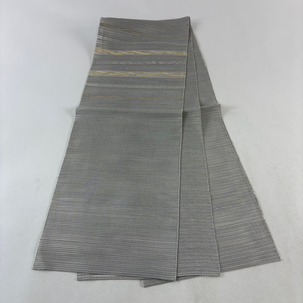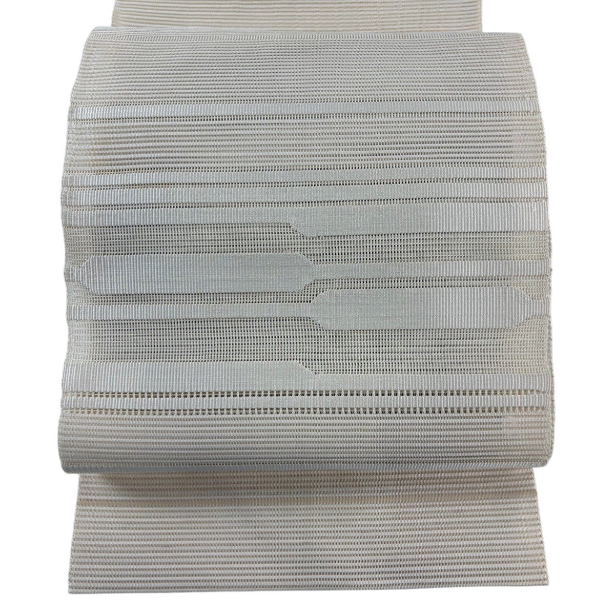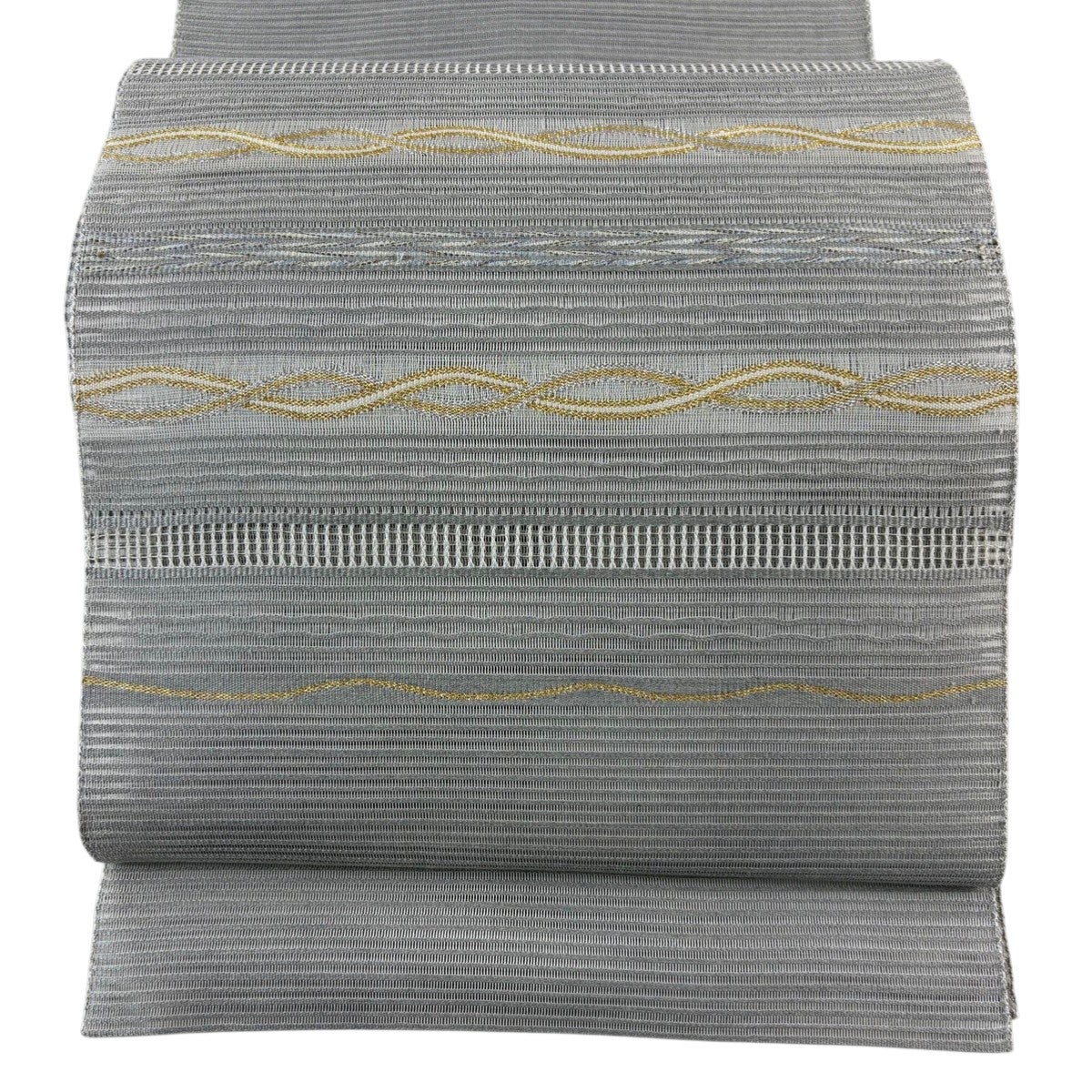 名古屋帯 秀品 夏帯 絽 八寸名古屋帯 松葉仕立て 縞 幾何学 金銀糸 灰色 正絹