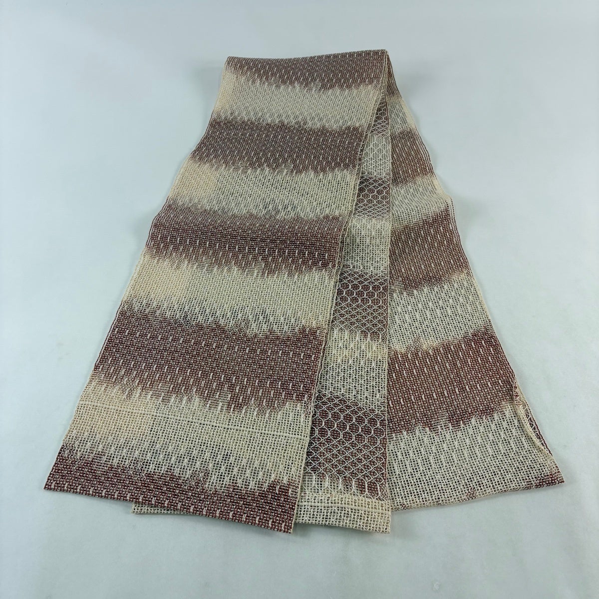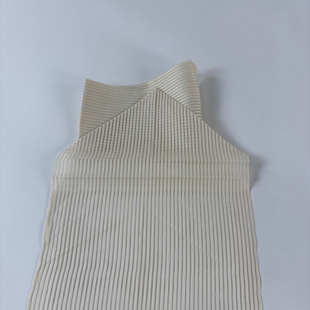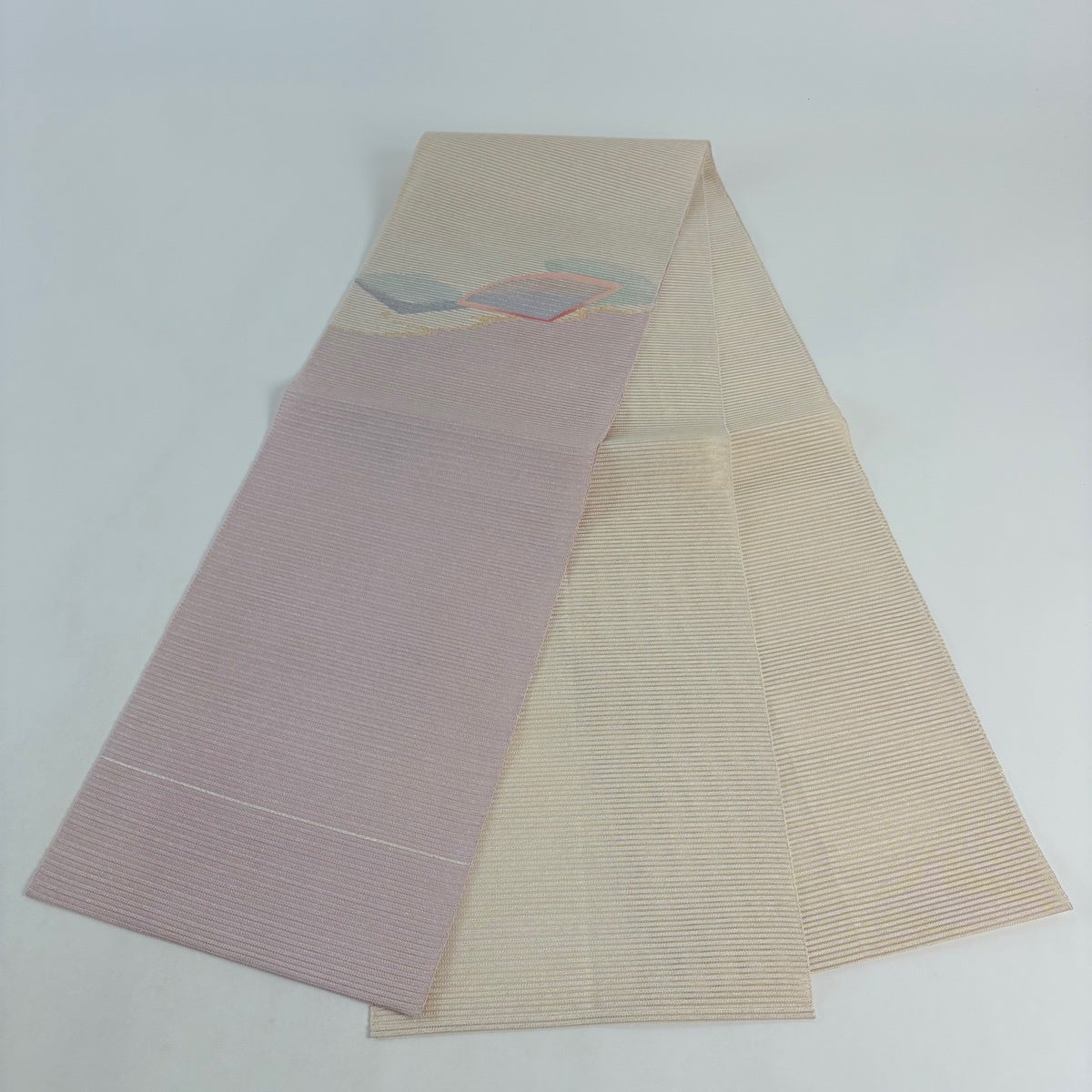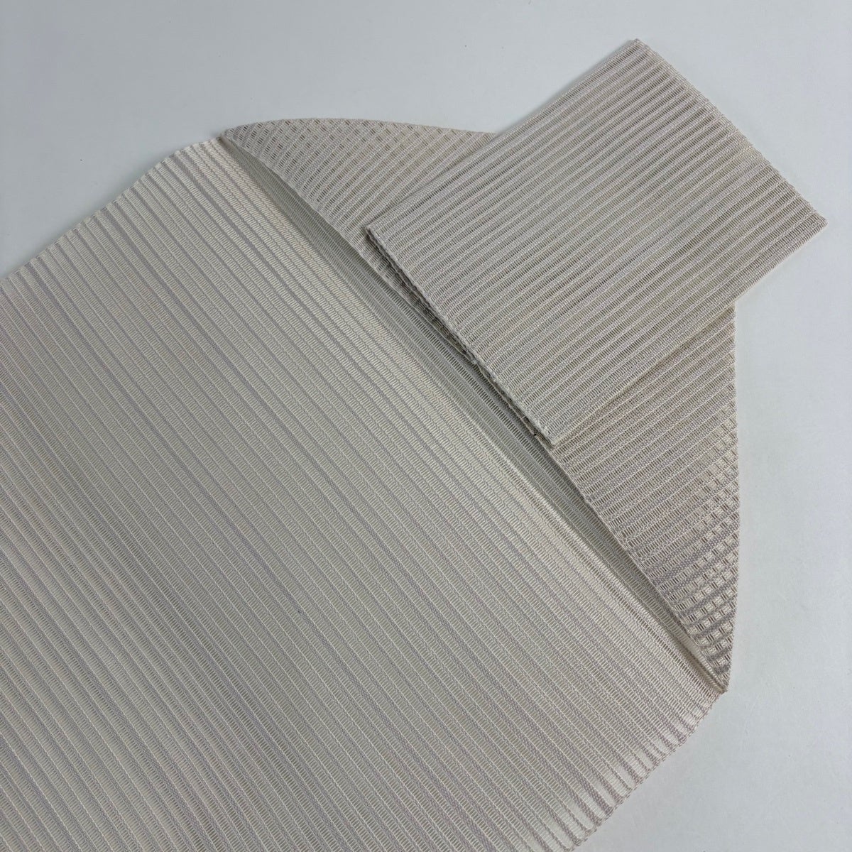 【美品】 名古屋帯 秀品 夏帯 絽 八寸名古屋帯 松葉仕立て トンネル仕立て 縞 幾何学模様 ベージュ 正絹