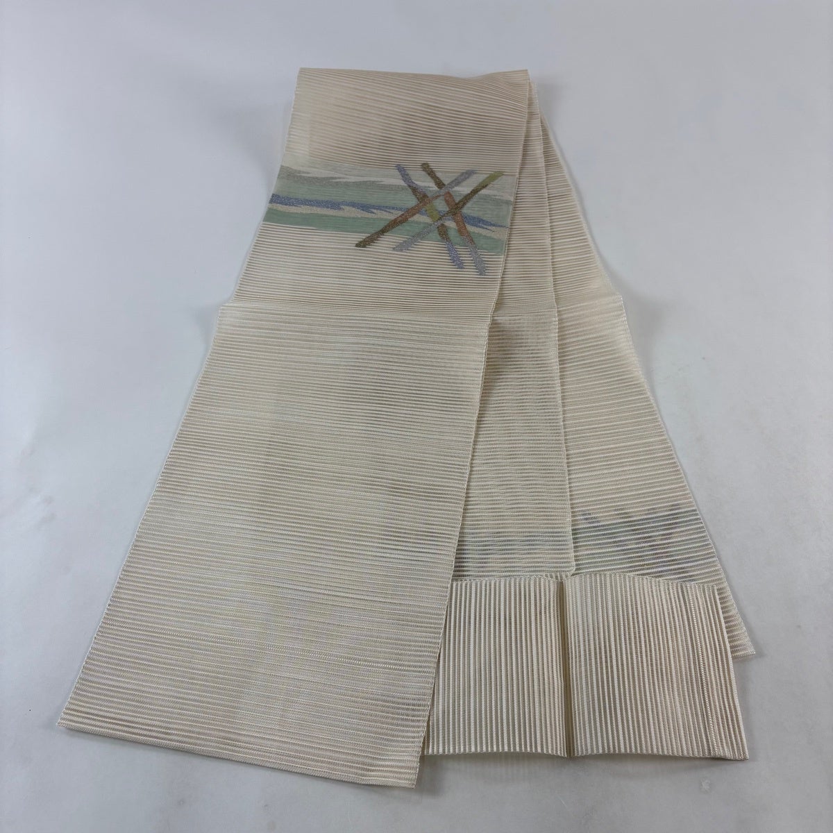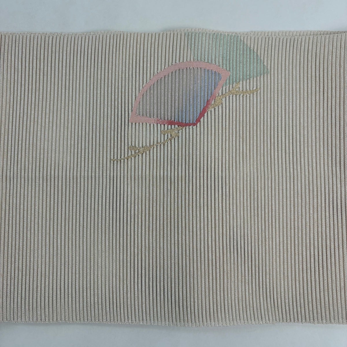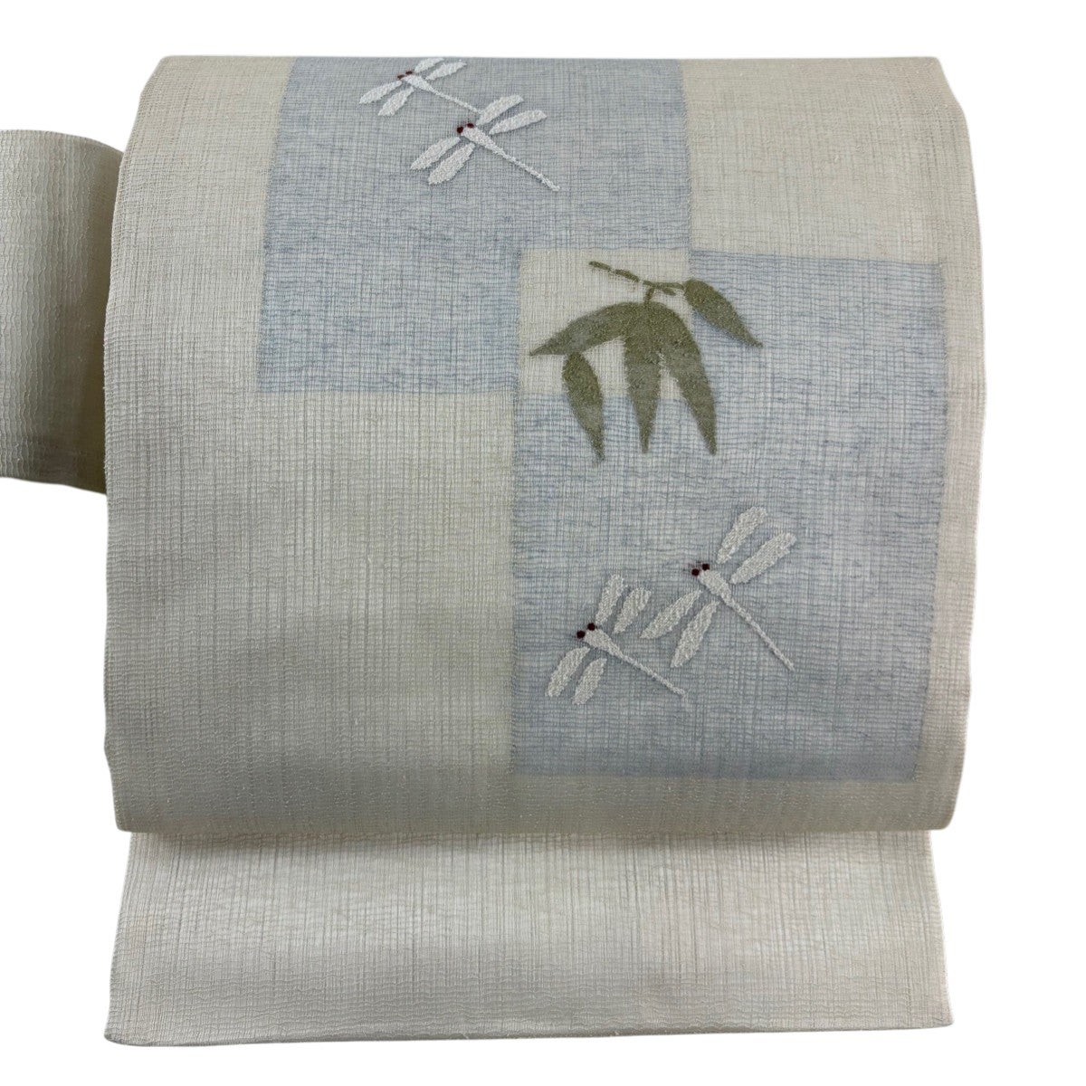【美品】 名古屋帯 秀品 夏帯 とんぼ 笹 ベージュ 正絹