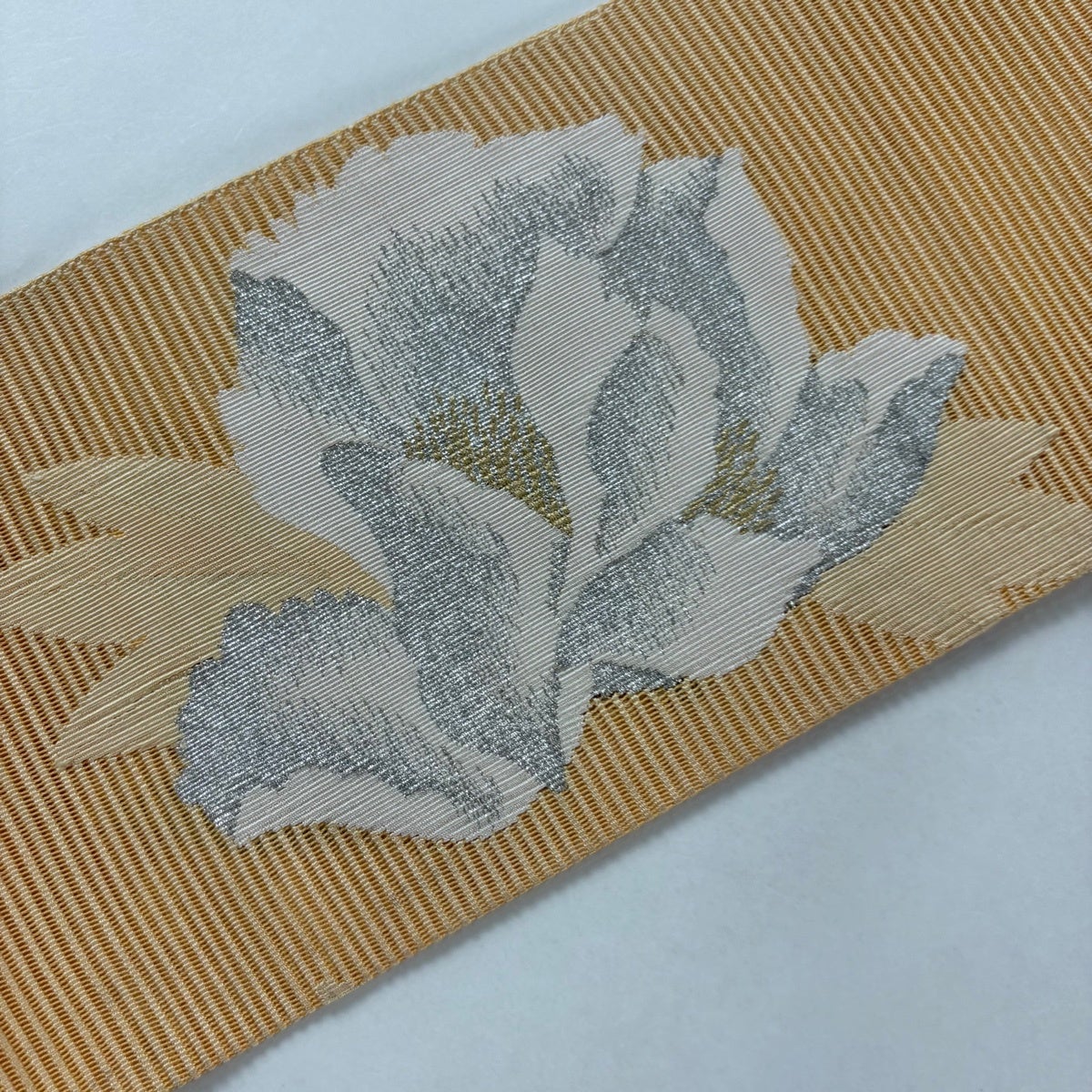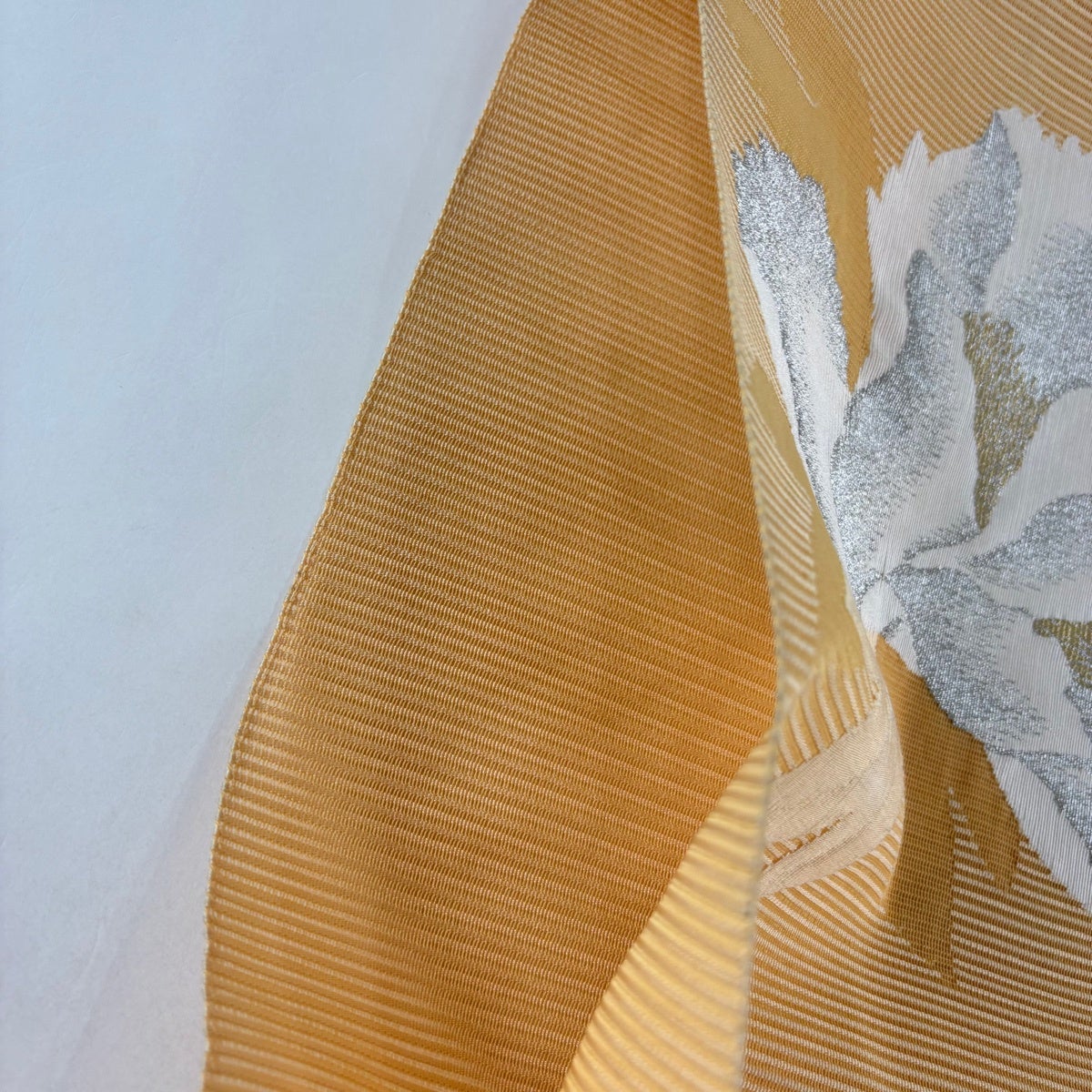 名古屋帯 秀品 夏帯 絽 トンネル仕立て 牡丹 金銀糸 オレンジ 正絹