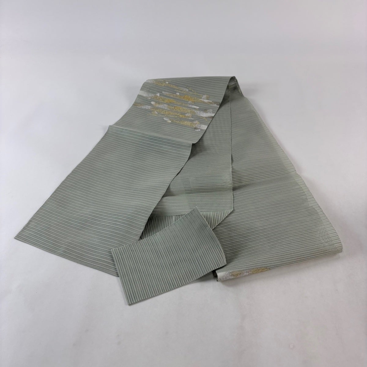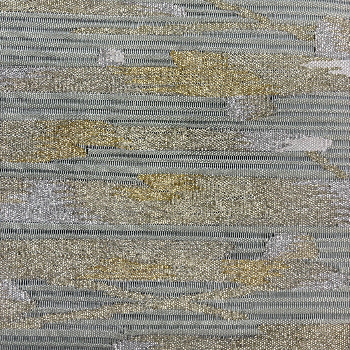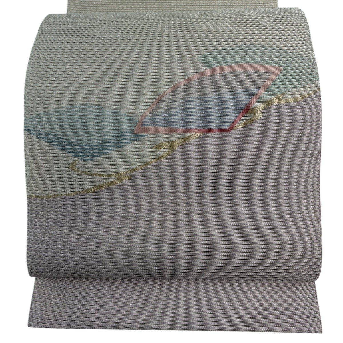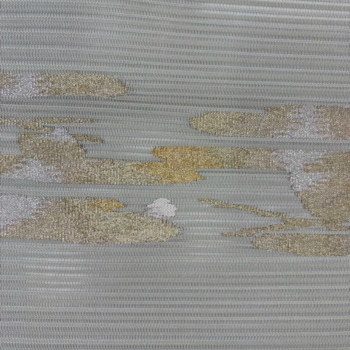 【美品】 名古屋帯 秀品 夏帯 絽 八寸名古屋帯 松葉仕立て 霞 幾何学模様 金銀糸 灰緑 正絹