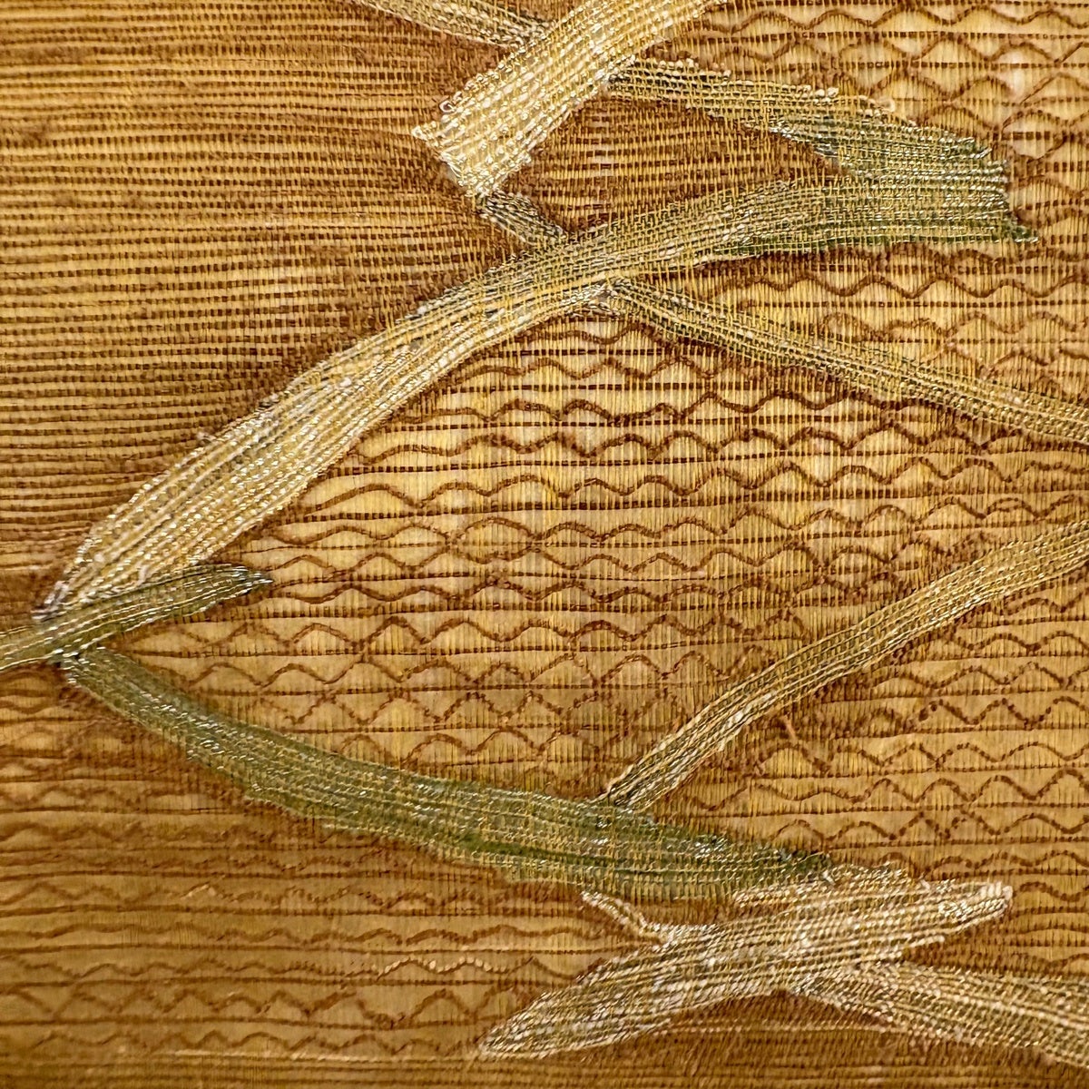 名古屋帯 秀品 夏帯 絽 八寸名古屋帯 松葉仕立て トンネル仕立て 萩 金糸 刺繍 灰色 正絹