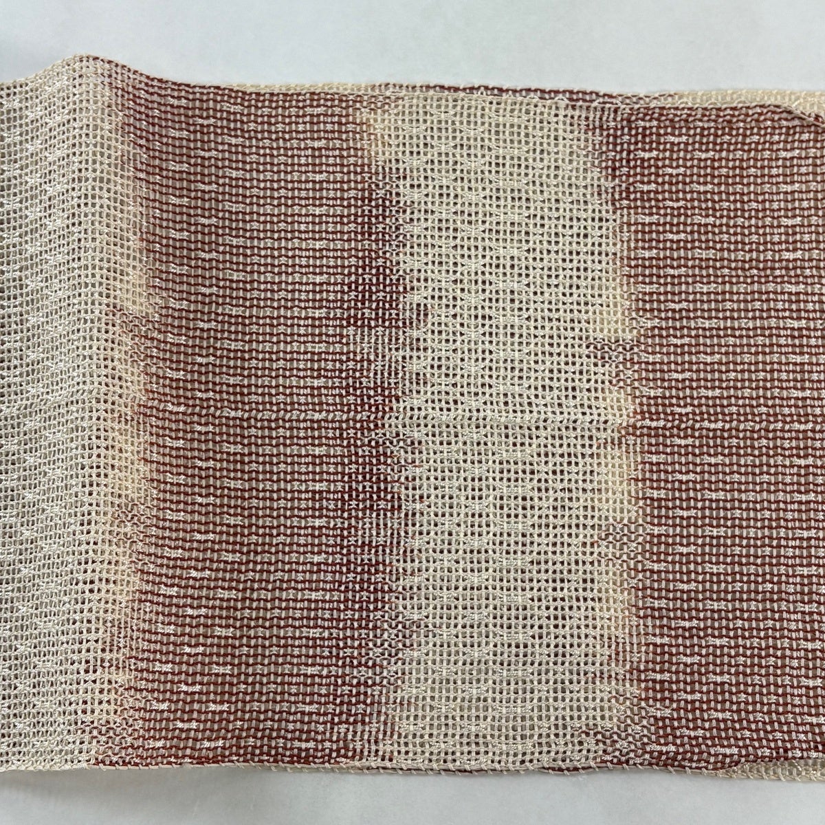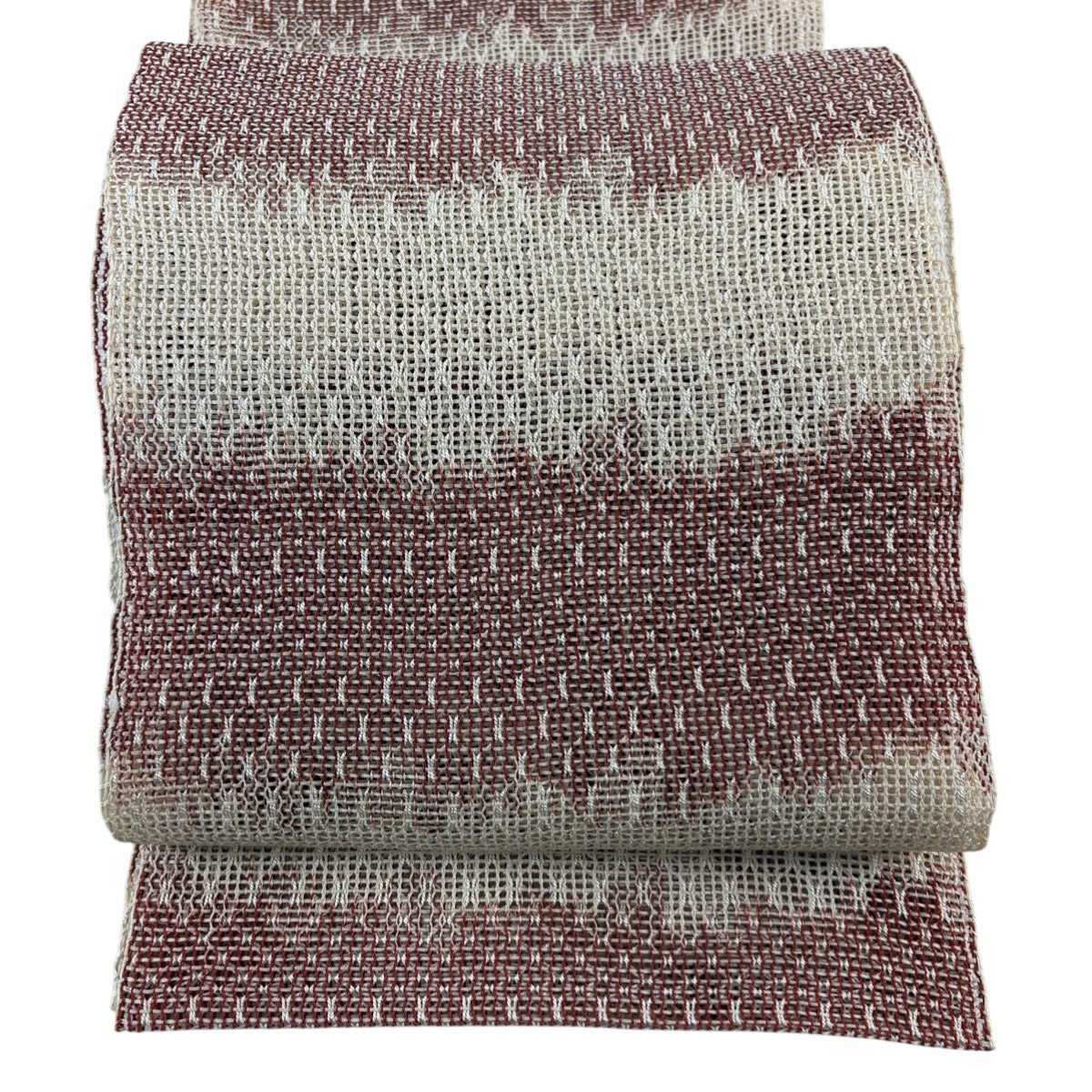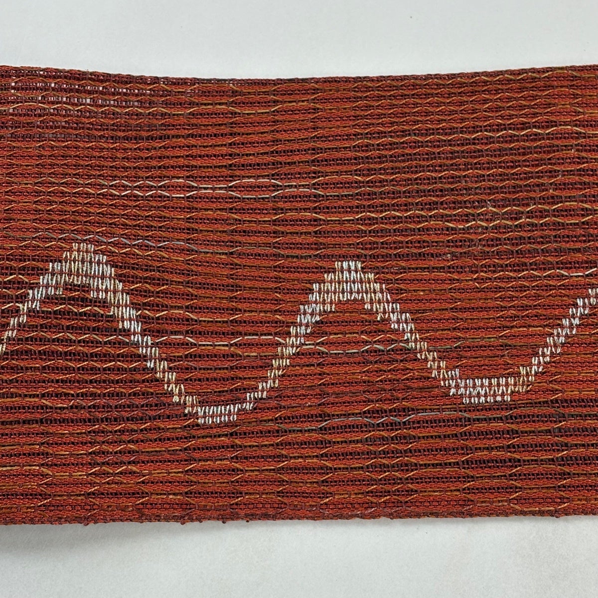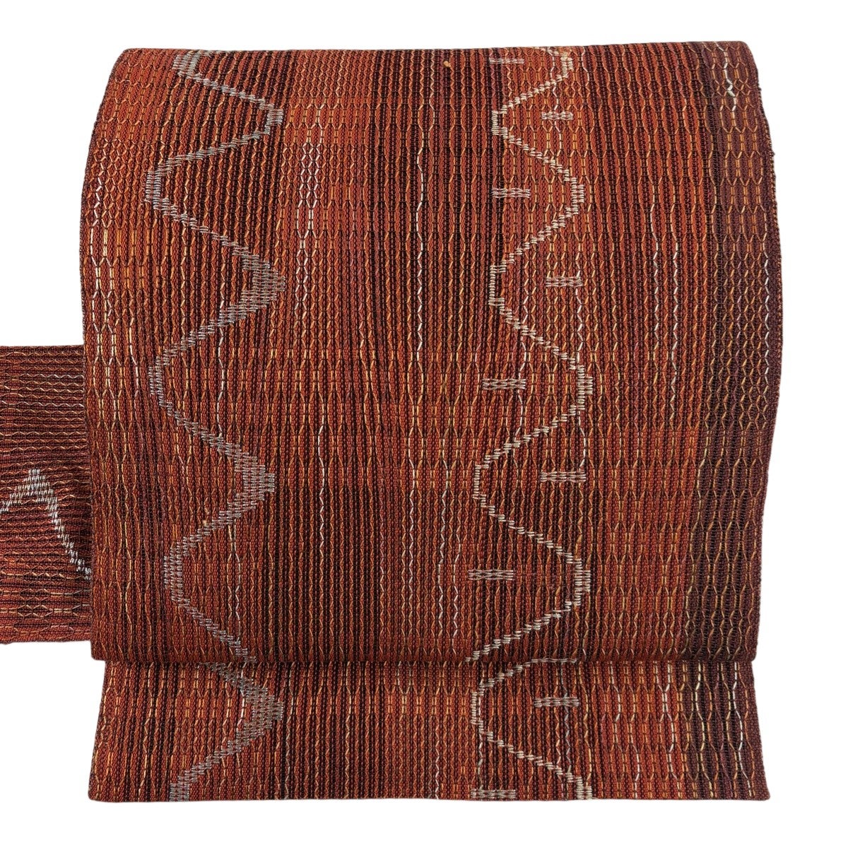 【美品】 名古屋帯 秀品 夏帯 幾何学 銀糸 赤茶 正絹