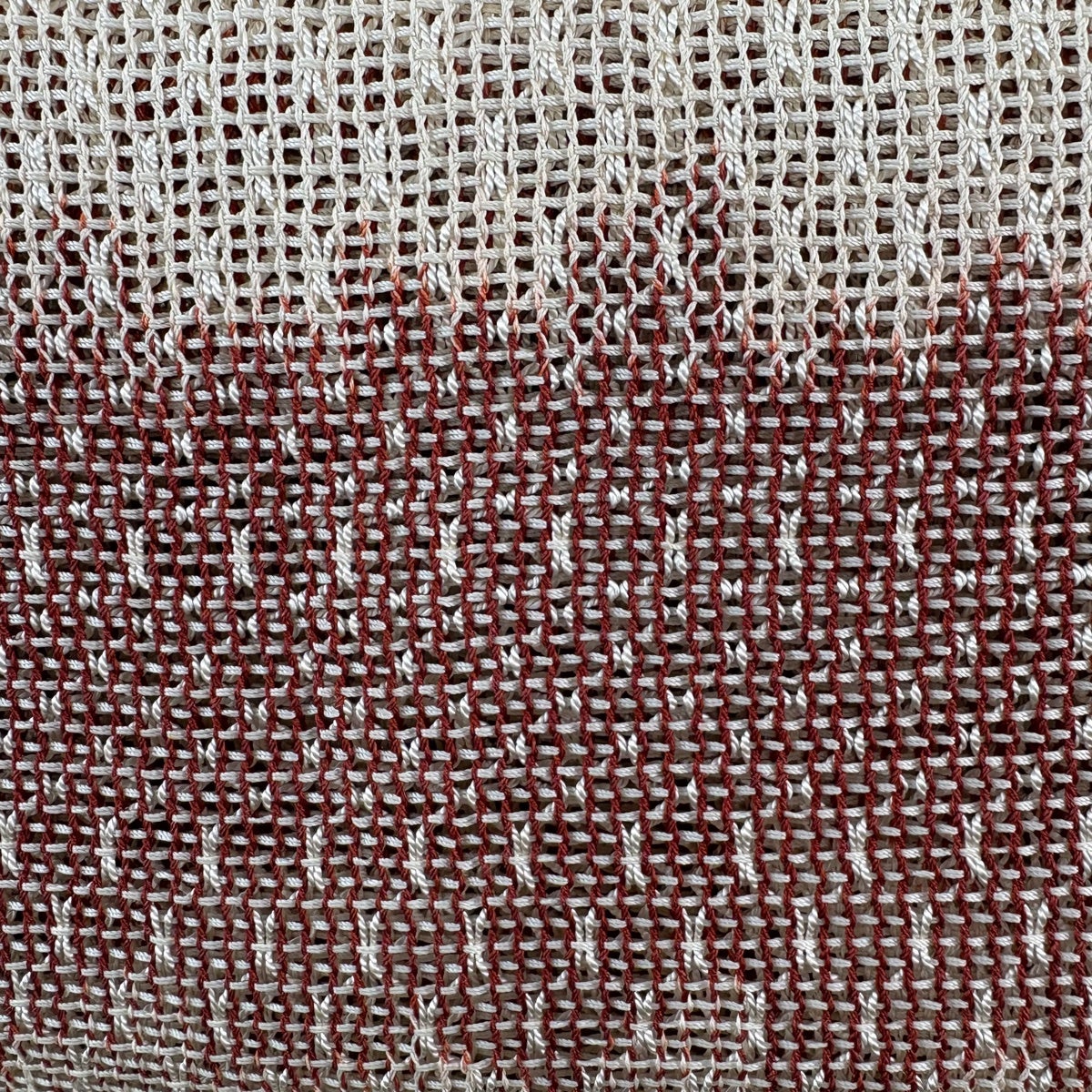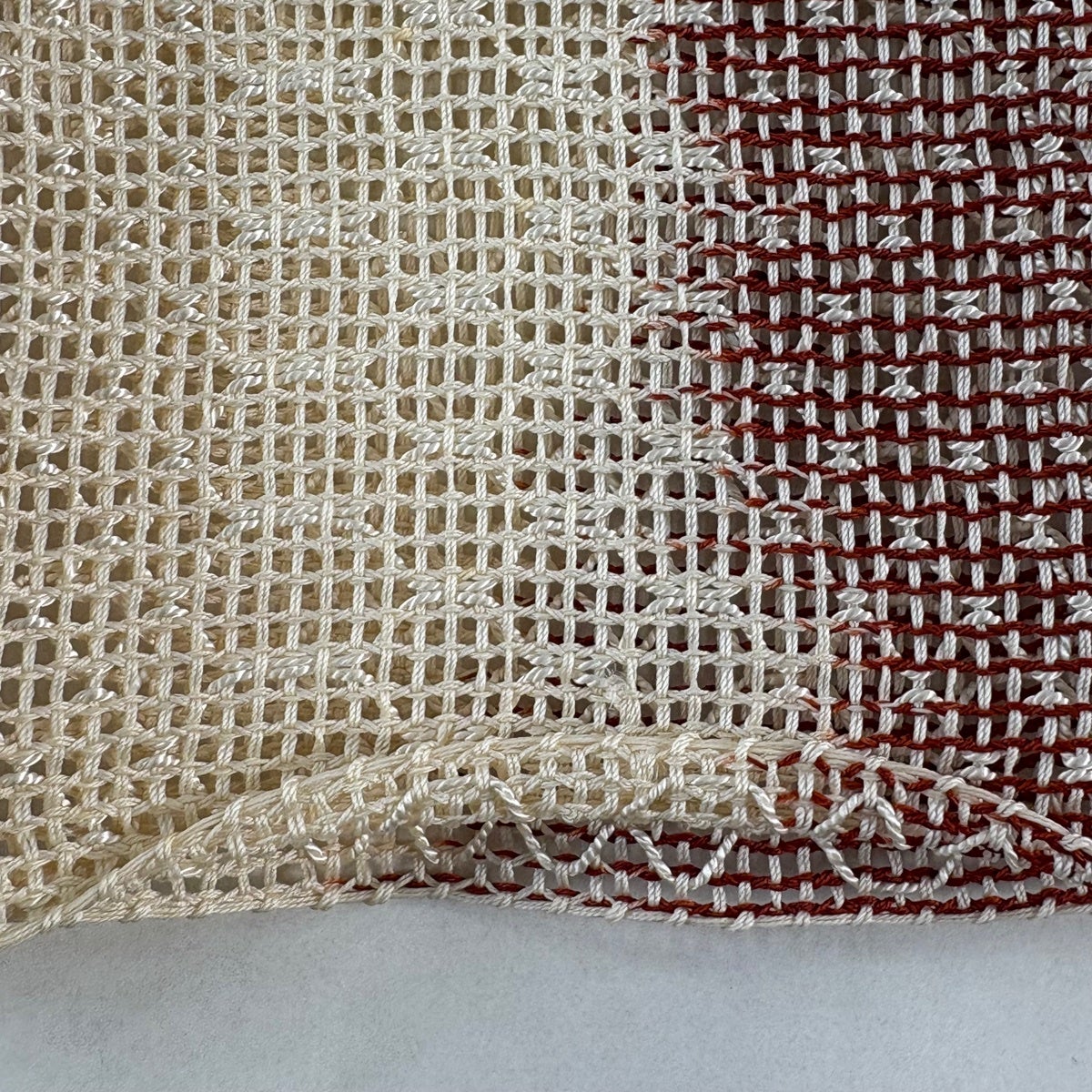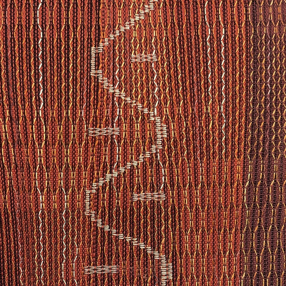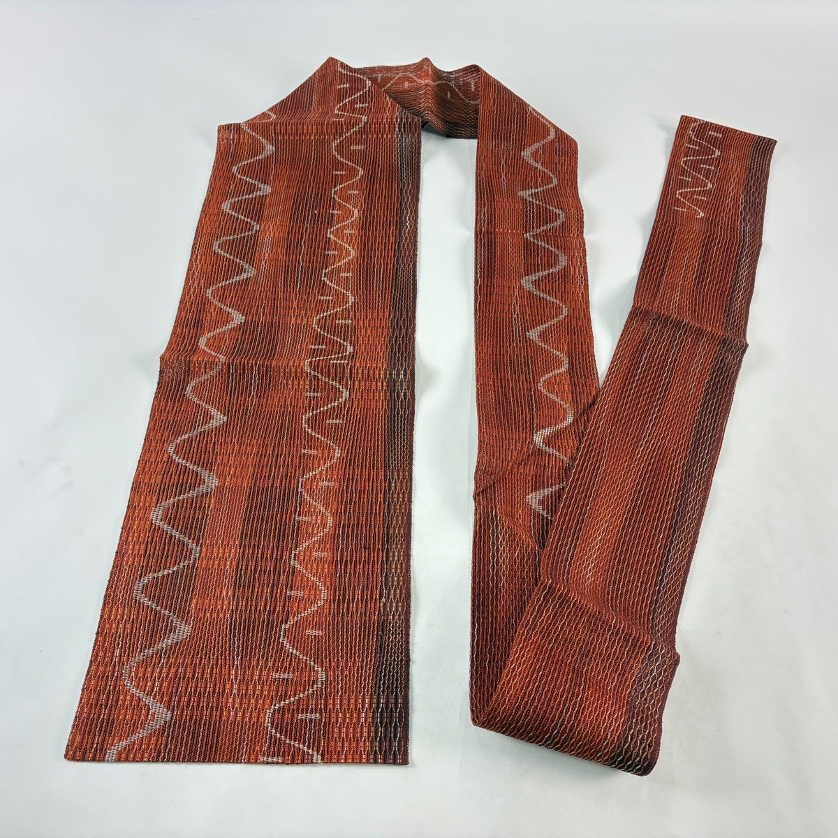 【美品】 名古屋帯 秀品 夏帯 幾何学 銀糸 赤茶 正絹