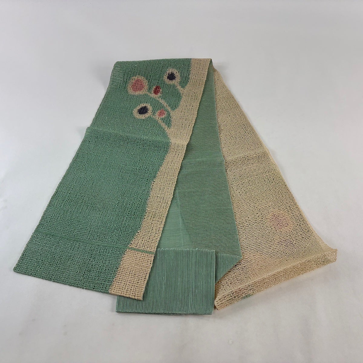 【美品】 名古屋帯 秀品 夏帯 絽 赤かぶ ちぎり絵 クリーム 正絹