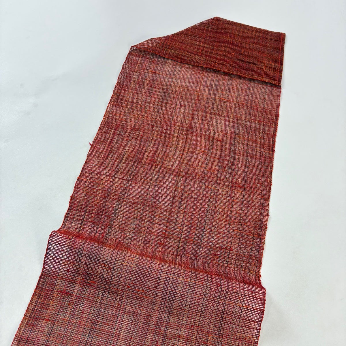 【美品】 名古屋帯 秀品 夏帯 八寸名古屋帯 松葉仕立て 草花 赤 正絹