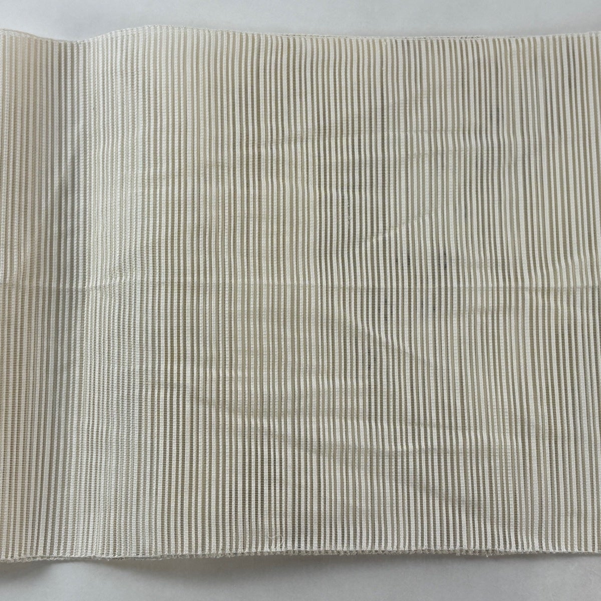 【美品】 名古屋帯 秀品 夏帯 縦絽 八寸名古屋帯 松葉仕立て 縞 波 金銀糸 ベージュ 正絹