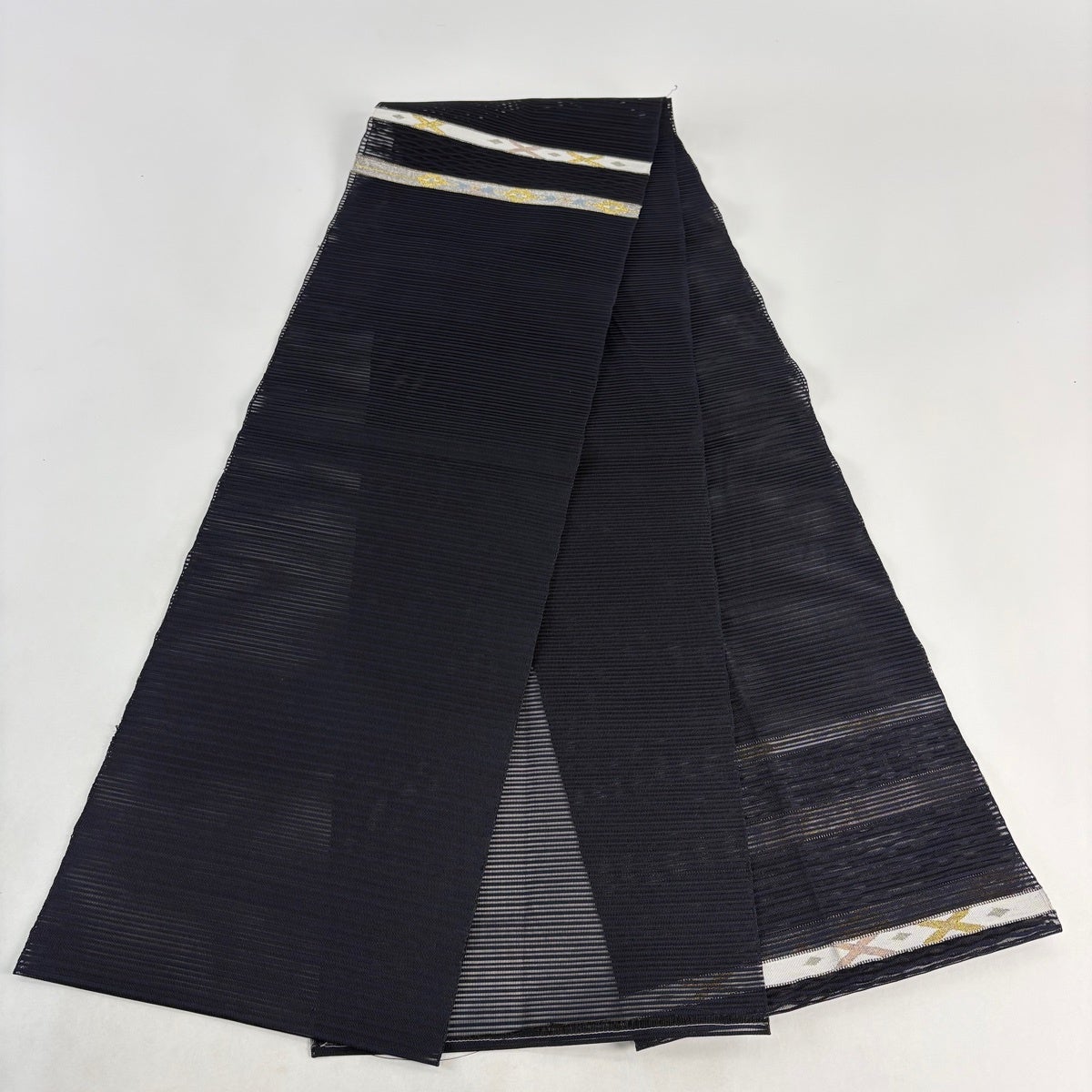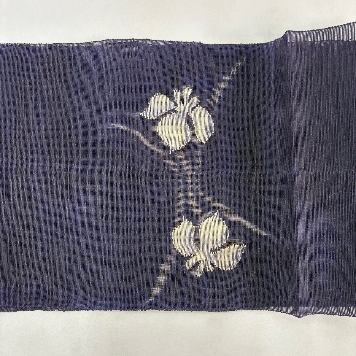 名古屋帯 秀品 夏帯 八寸名古屋帯 松葉仕立て 草花 羅織 黒 正絹