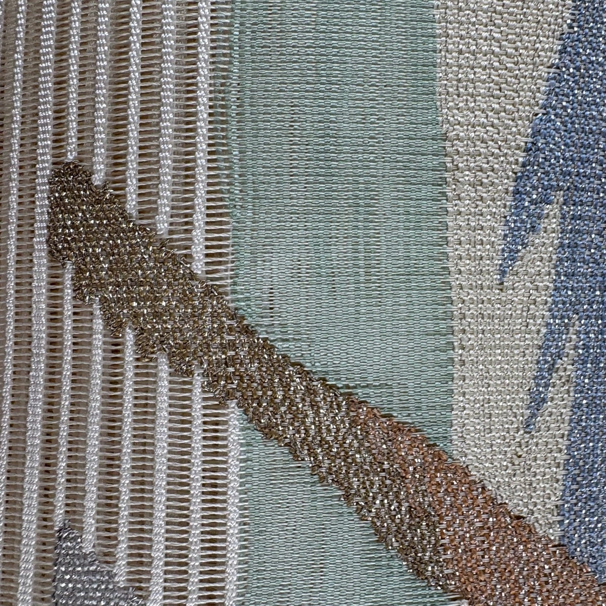 【美品】 袋帯 秀品 落款あり 夏帯 絽 御仕覆 草花 金銀彩 箔 青灰色 お太鼓柄 正絹