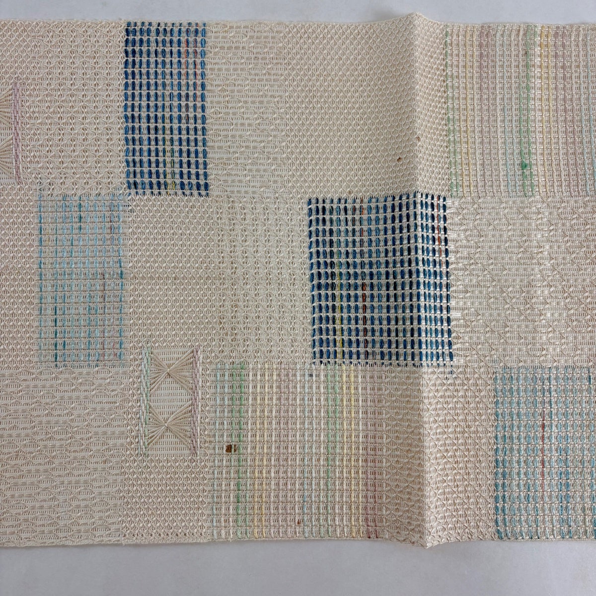 名古屋帯 秀品 夏帯 羅 八寸名古屋帯 松葉仕立て トンネル仕立て 幾何学模様 菱 ベージュ 正絹