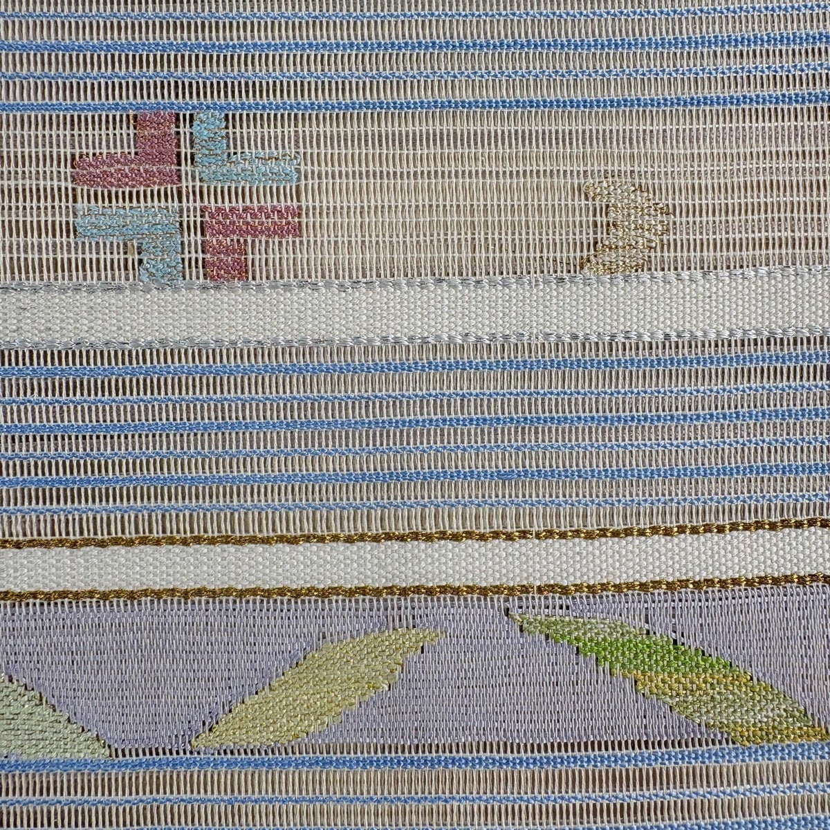袋帯 秀品 夏帯 絽 竜田川 鳥 間垣 金銀糸 唐織 灰紫 六通 正絹