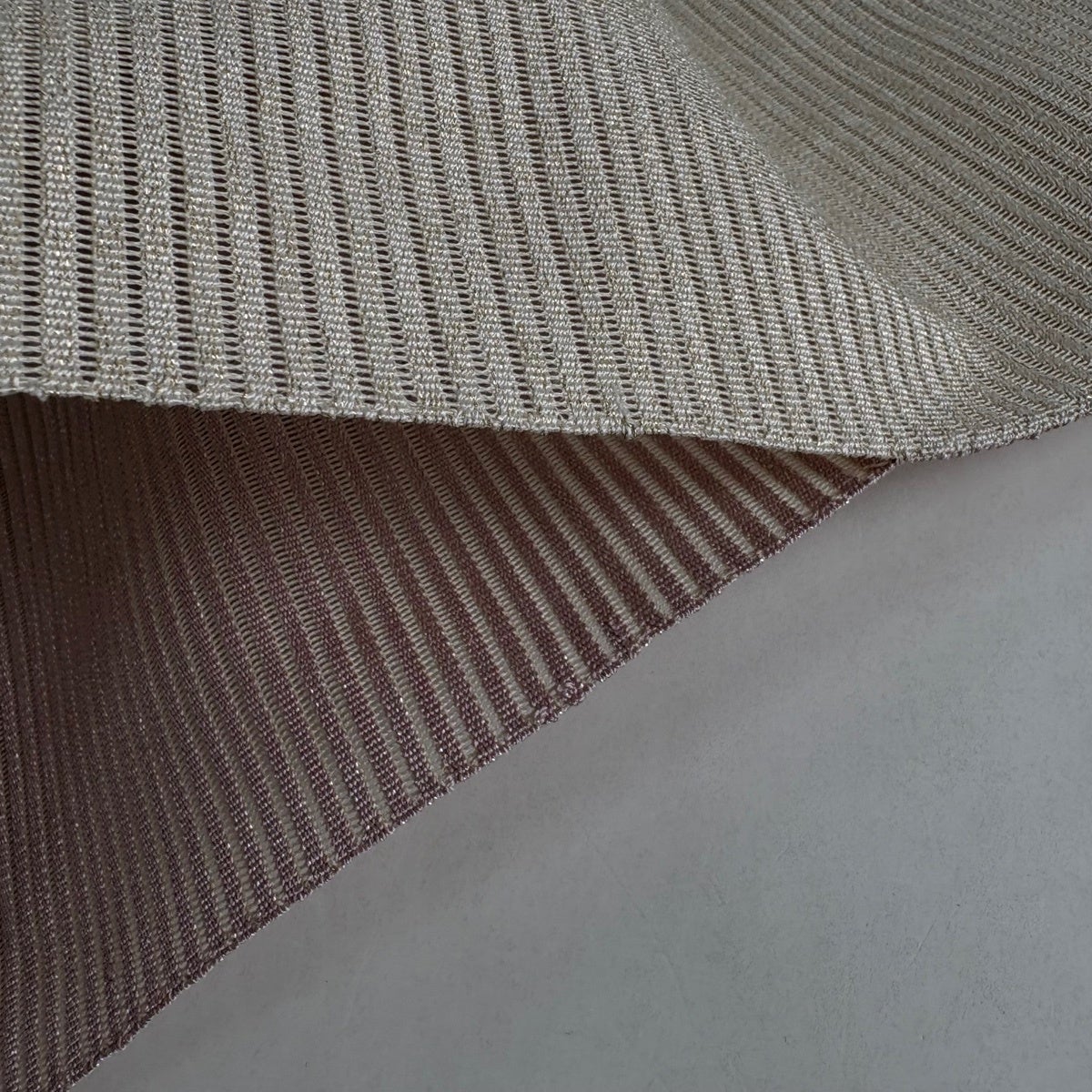 【美品】 名古屋帯 秀品 夏帯 絽 八寸名古屋帯 松葉仕立て トンネル仕立て 縞 箔 ベージュ 正絹