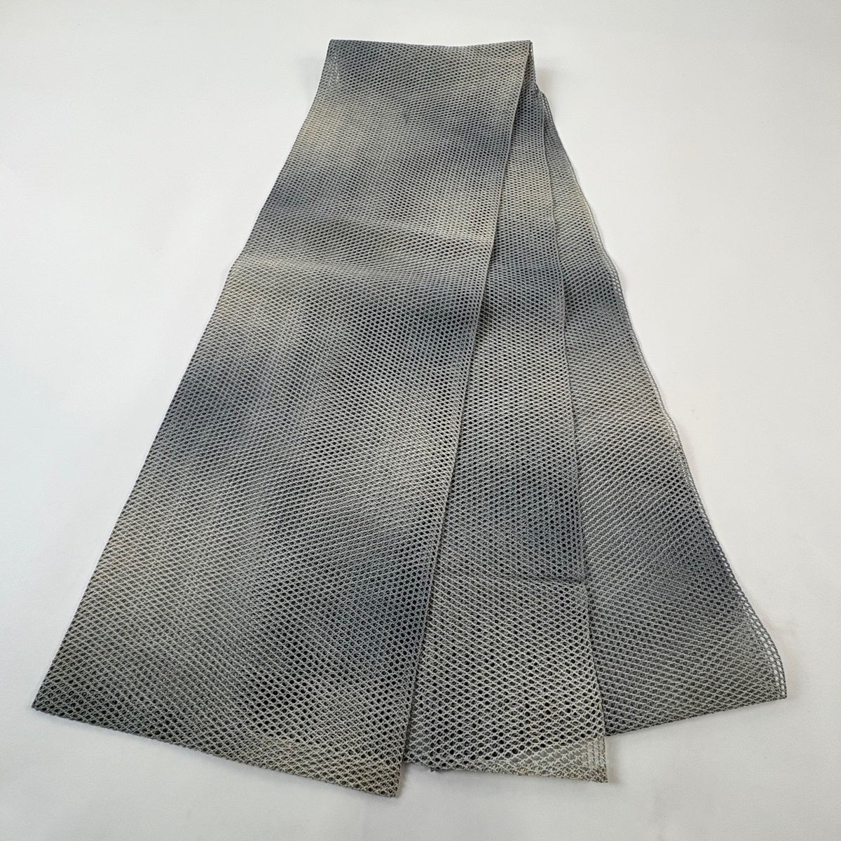 名古屋帯 秀品 夏帯 羅 八寸名古屋帯 ぼかし柄 青灰色 正絹
