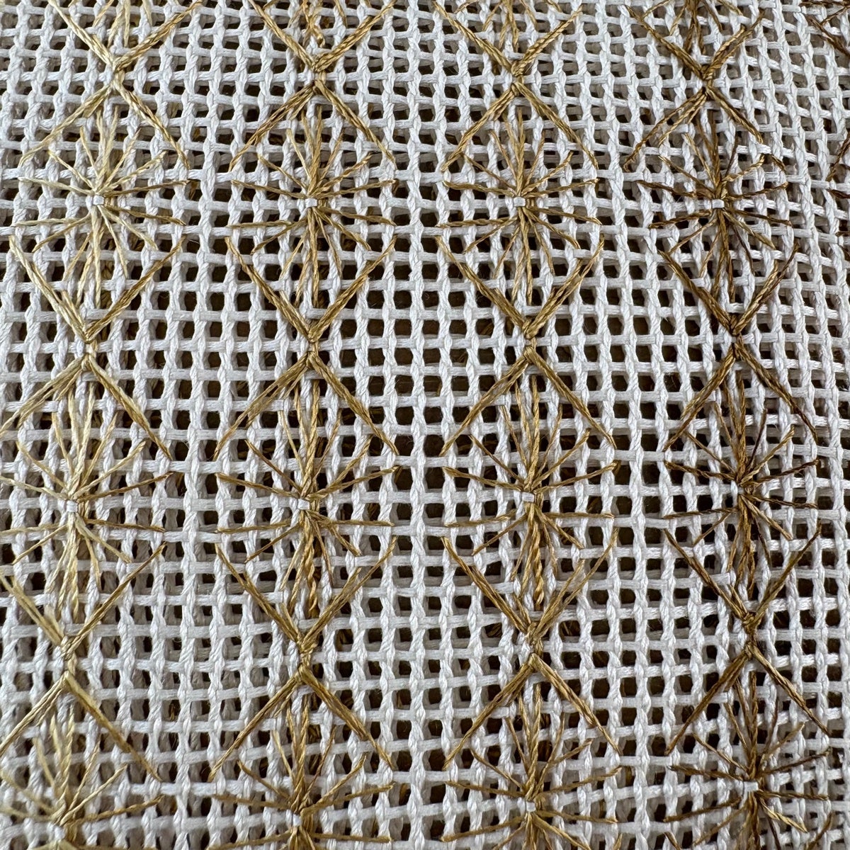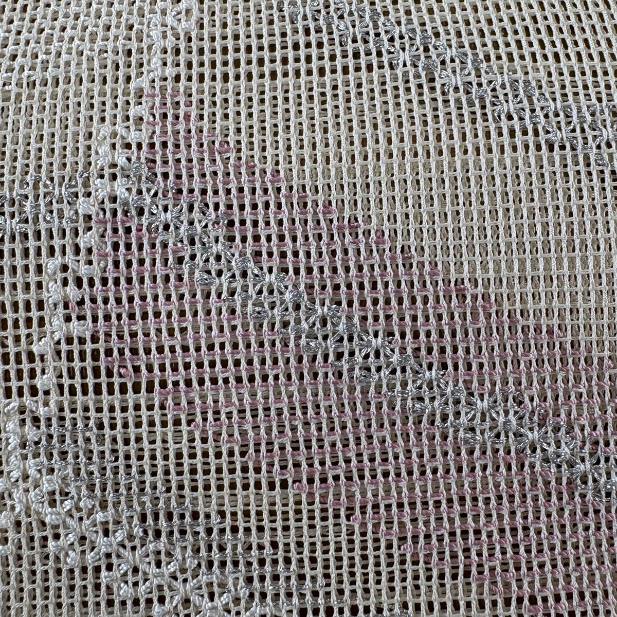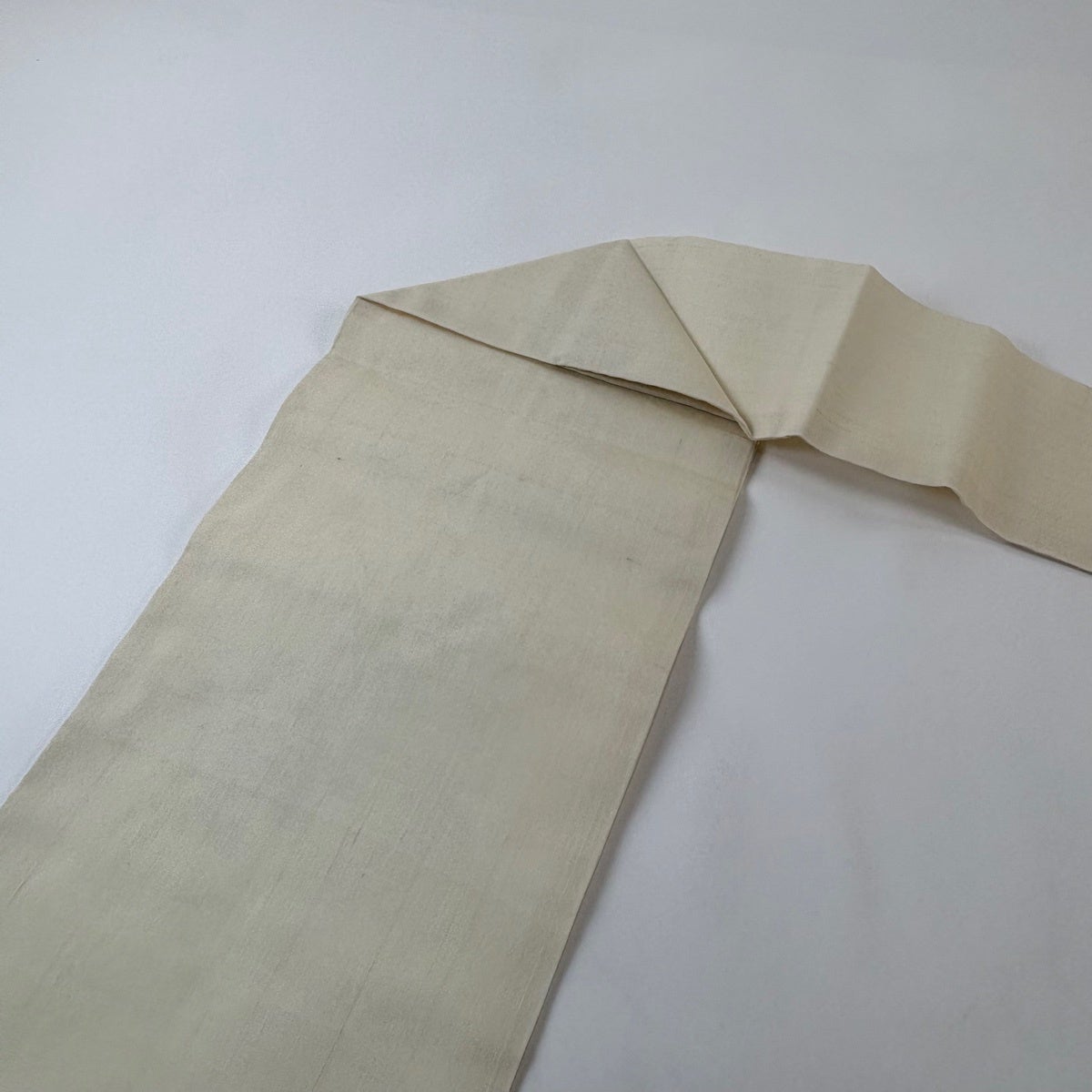 【美品】 名古屋帯 秀品 八寸名古屋帯 松葉仕立て 夏帯 幾何学模様 銀糸 クリーム 正絹