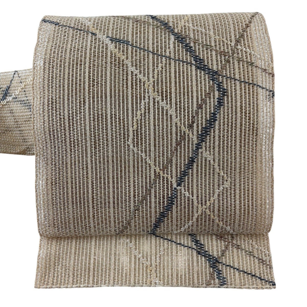 名古屋帯 秀品 八寸名古屋帯 夏帯 幾何学模様 金糸 ベージュ 正絹