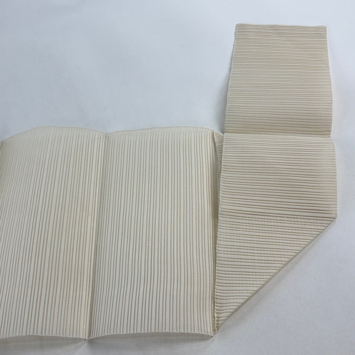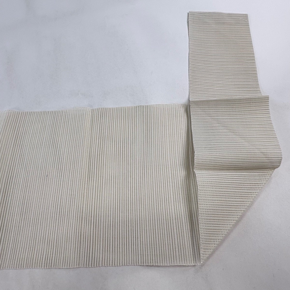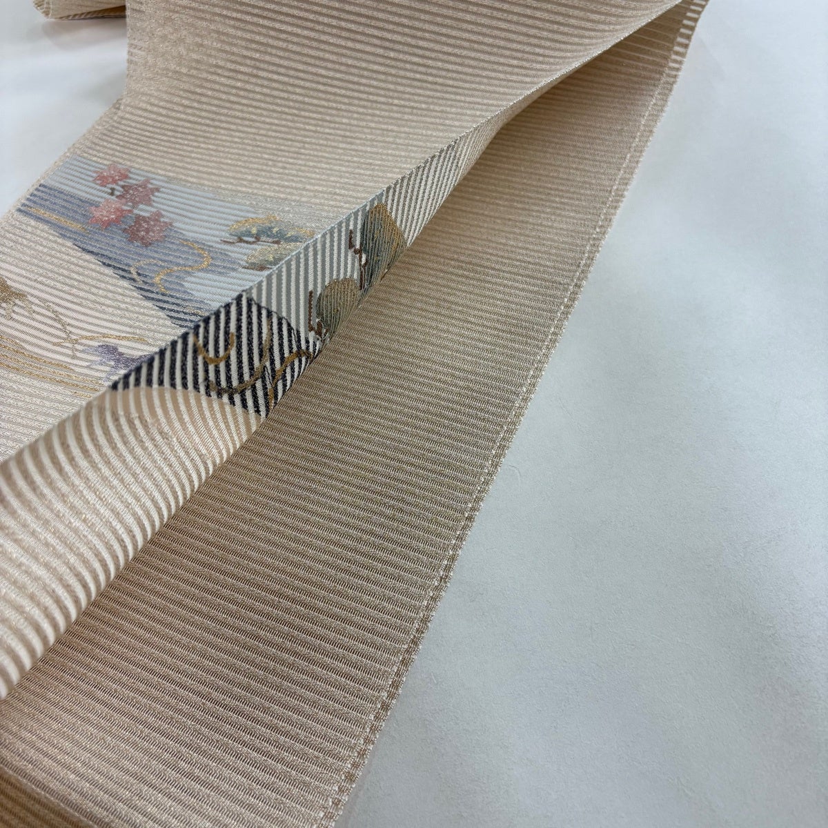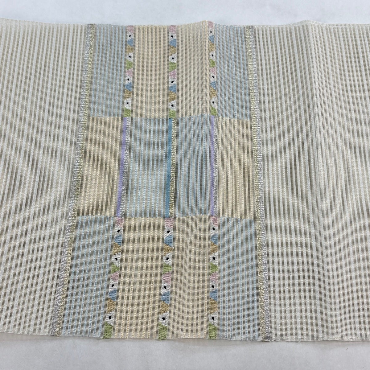 【美品】 名古屋帯 秀品 夏帯 八寸名古屋帯 松葉仕立て 縞 幾何学模様 ベージュ 正絹