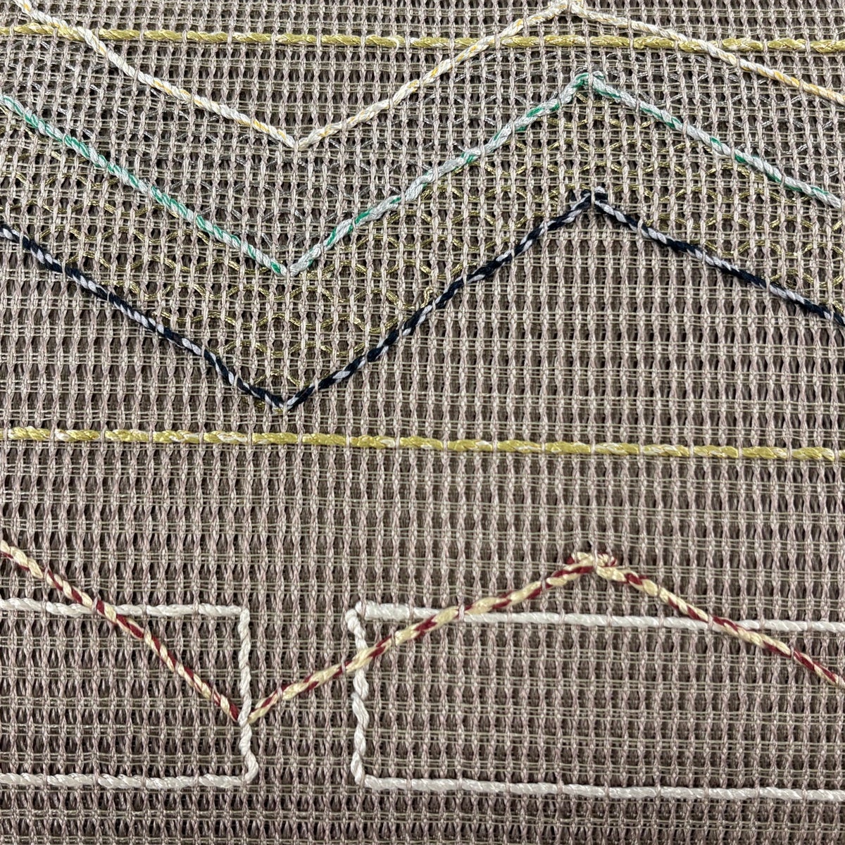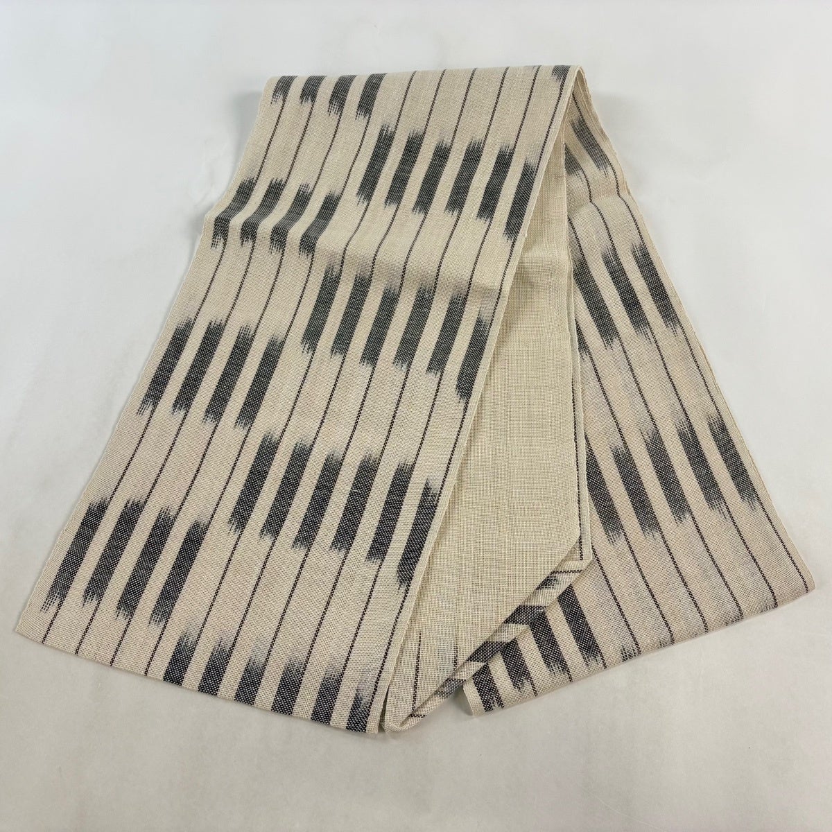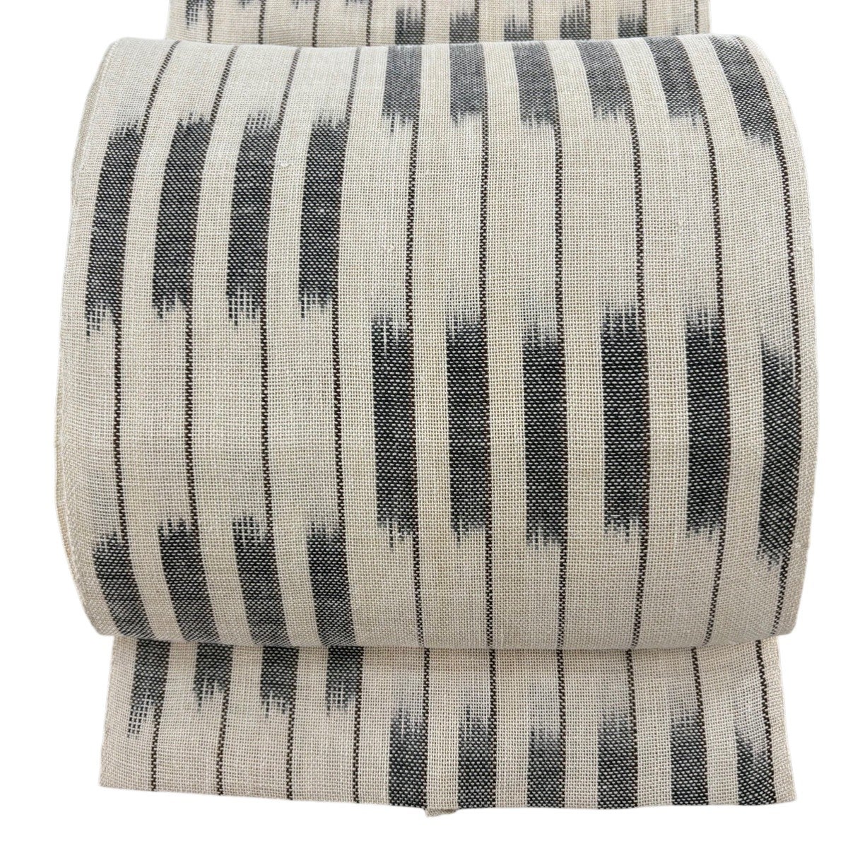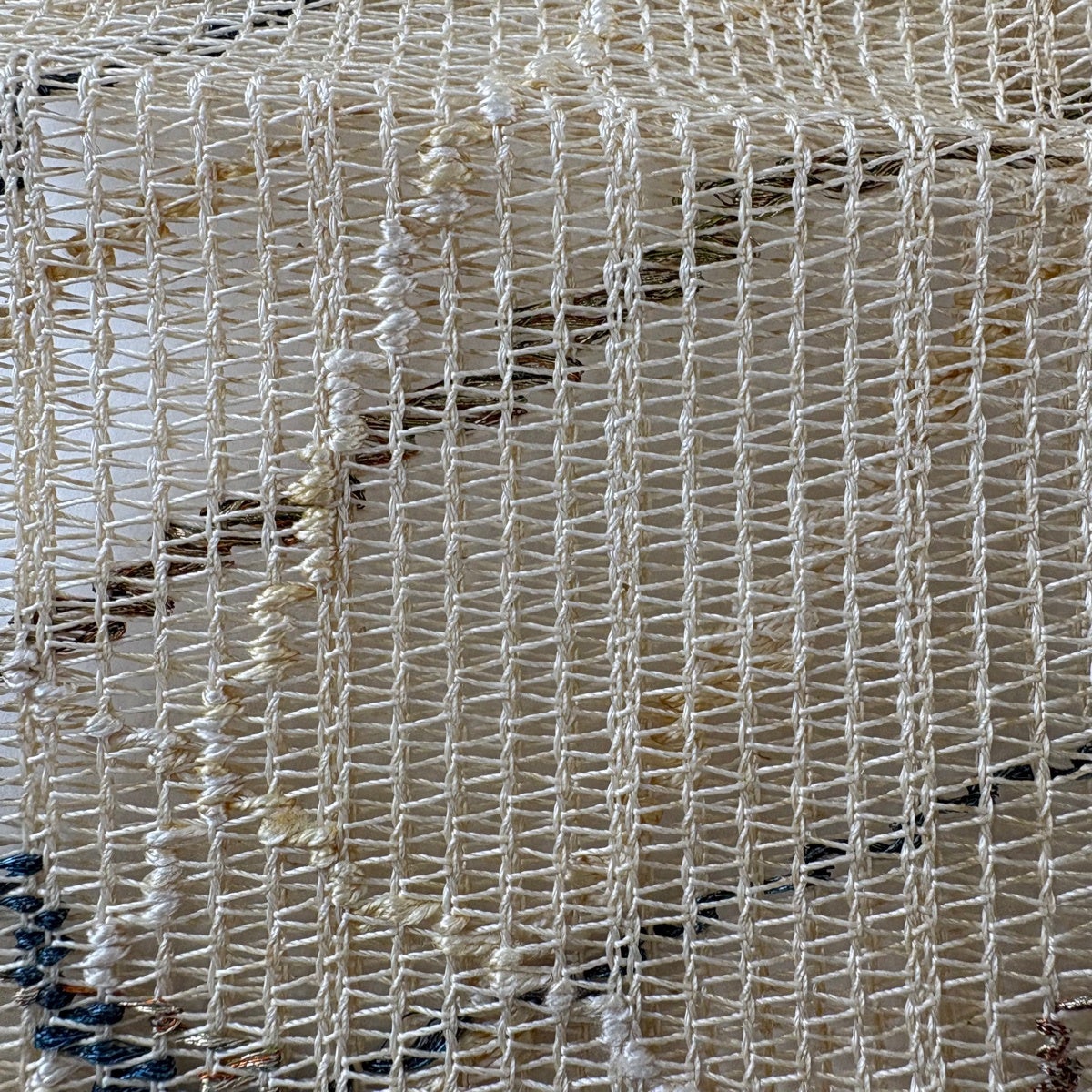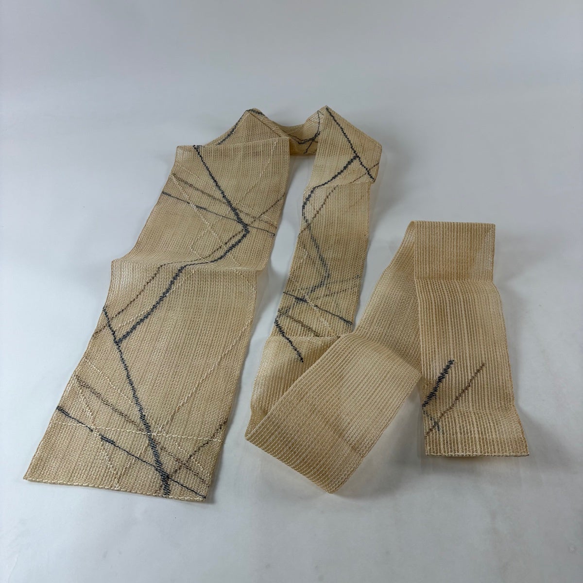 【美品】 名古屋帯 秀品 夏帯 八寸名古屋帯 松葉仕立て 縞 幾何学模様 ベージュ 正絹