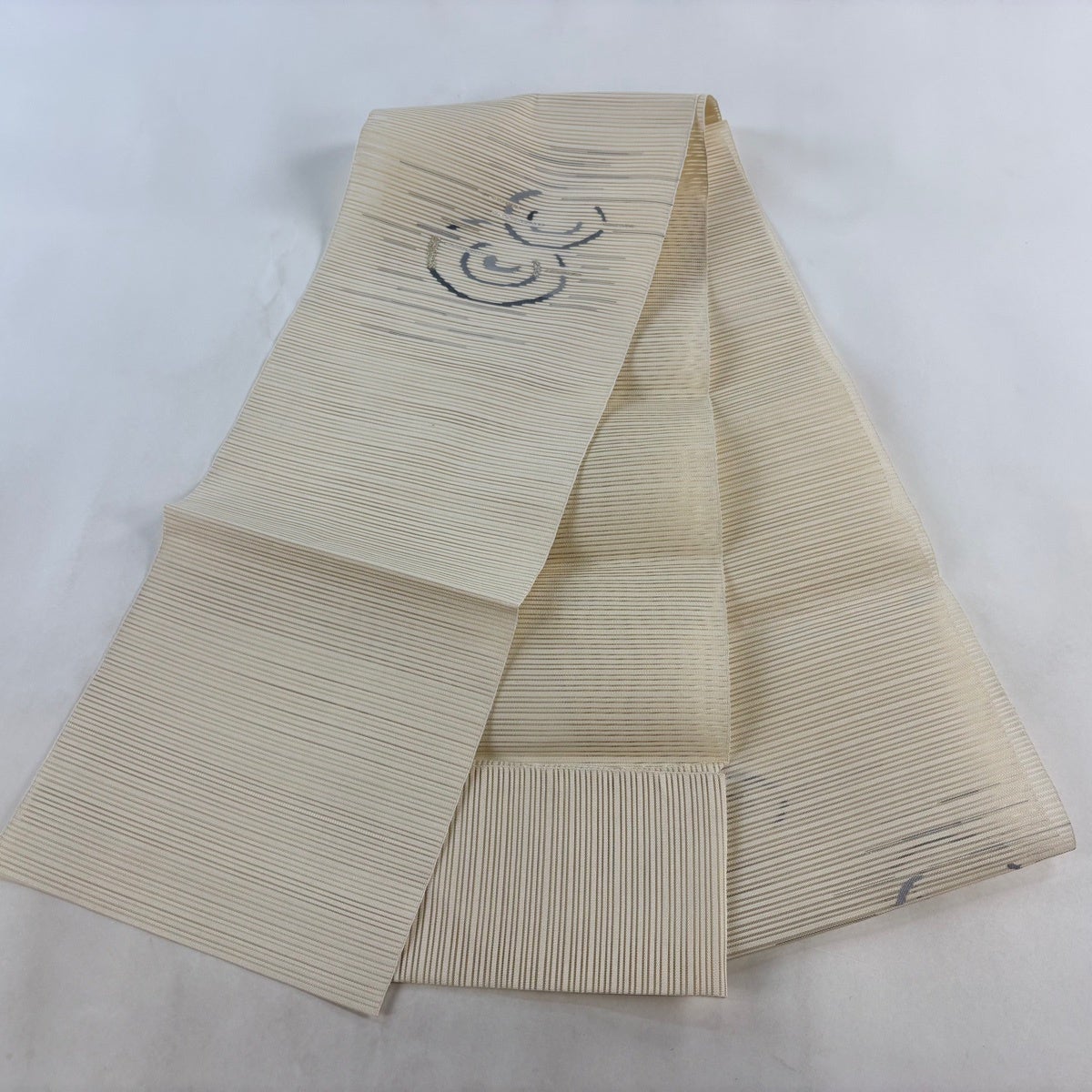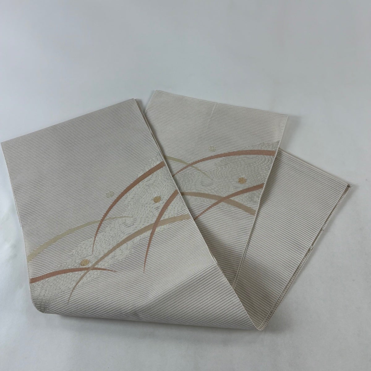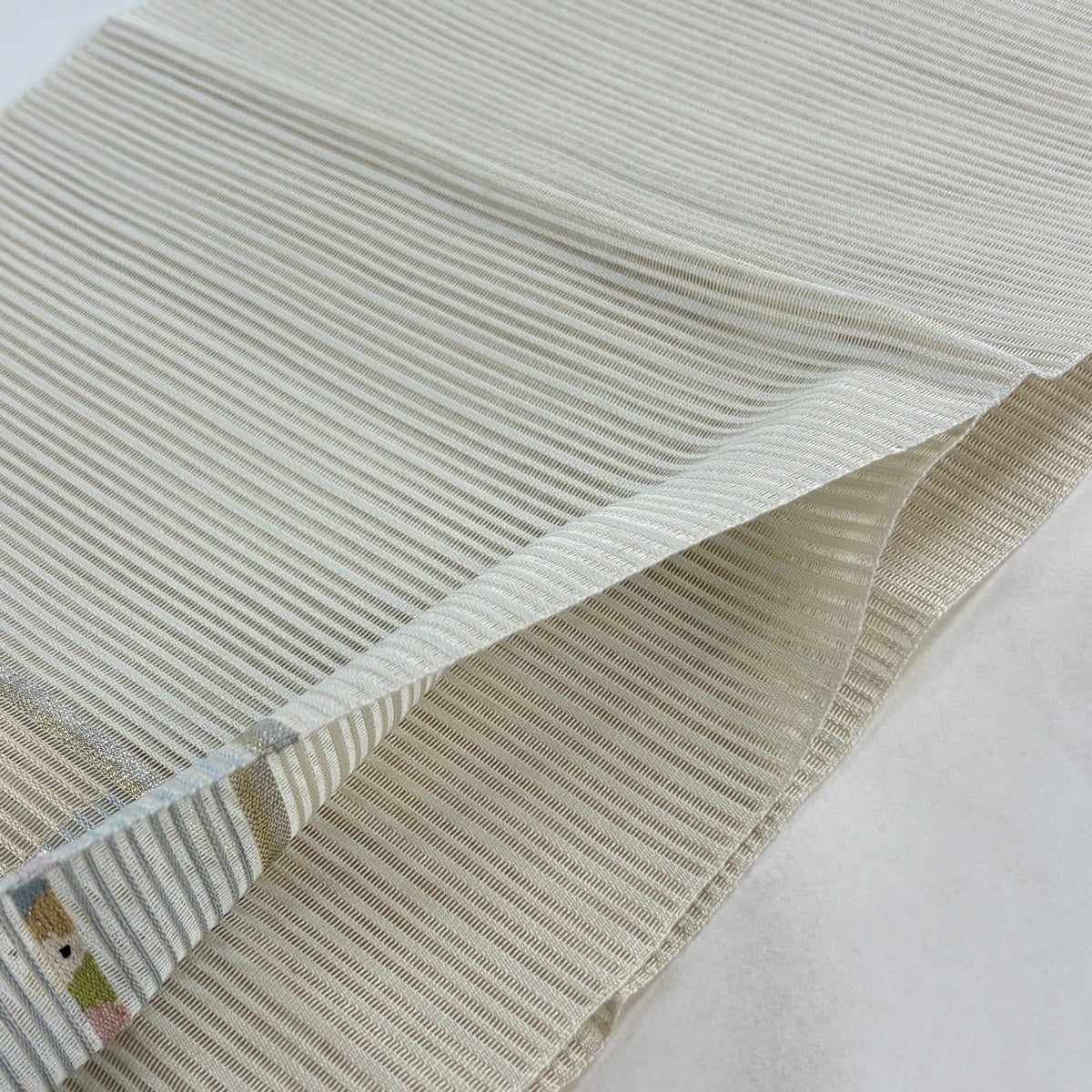 【美品】 名古屋帯 秀品 夏帯 絽 八寸名古屋帯 松葉仕立て 水面 金銀糸 クリーム 正絹