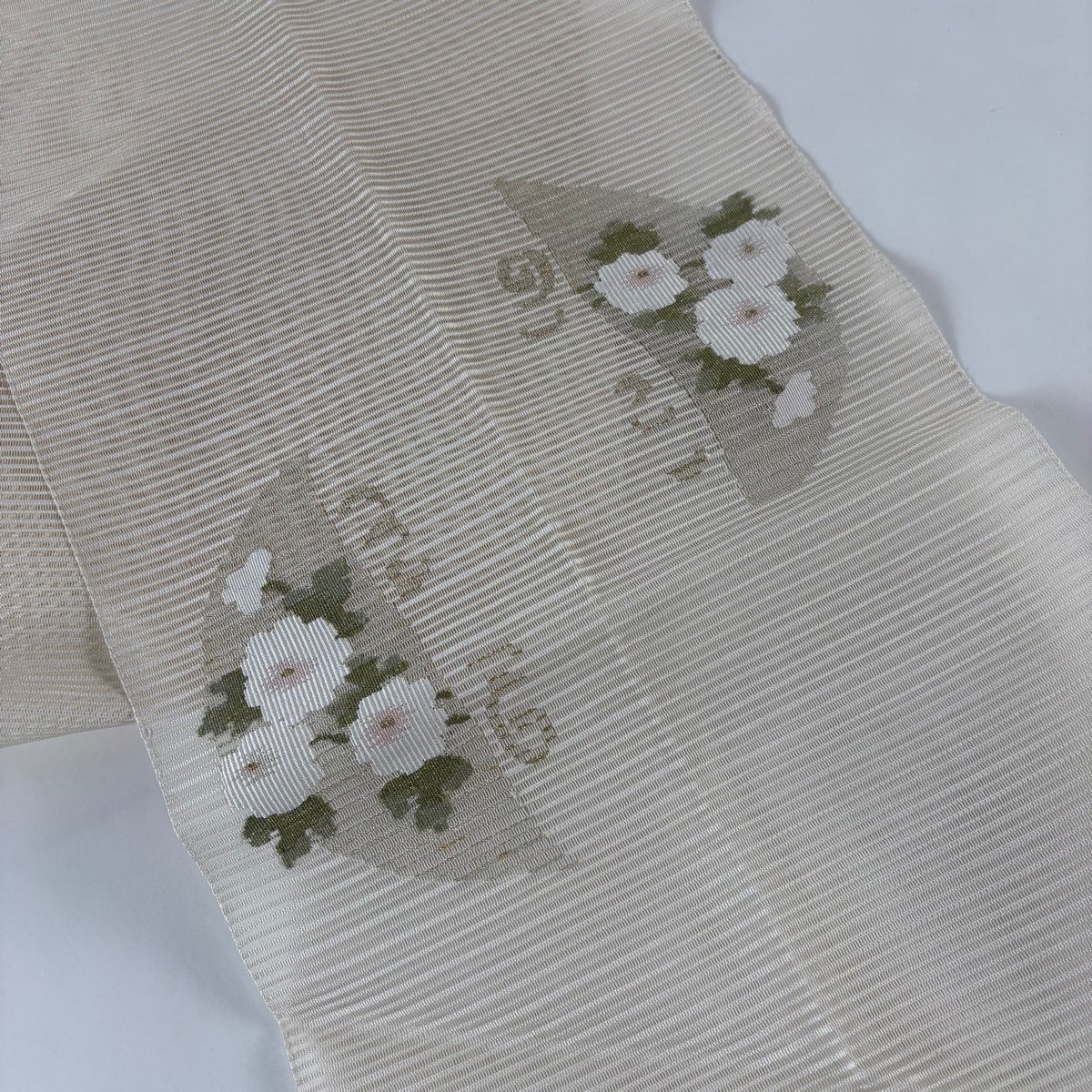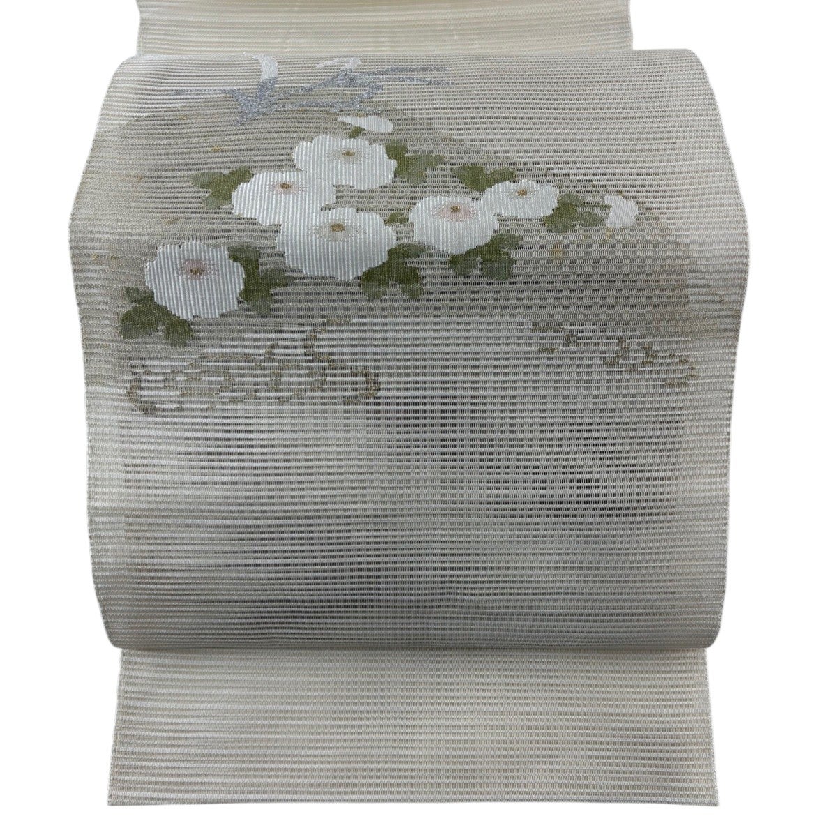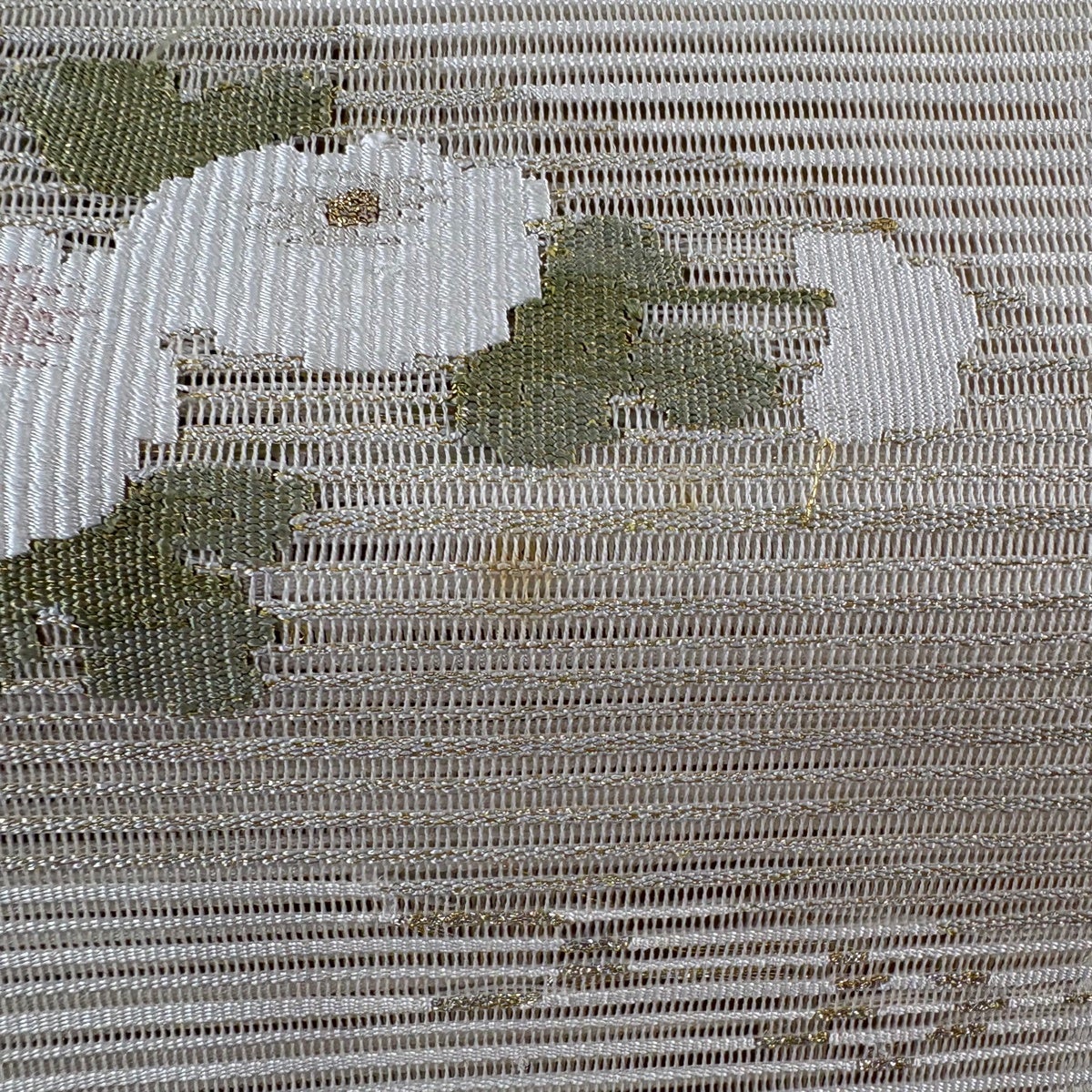 名古屋帯 秀品 八寸名古屋帯 松葉仕立て 夏帯 絽 草花 金銀糸 クリーム 正絹