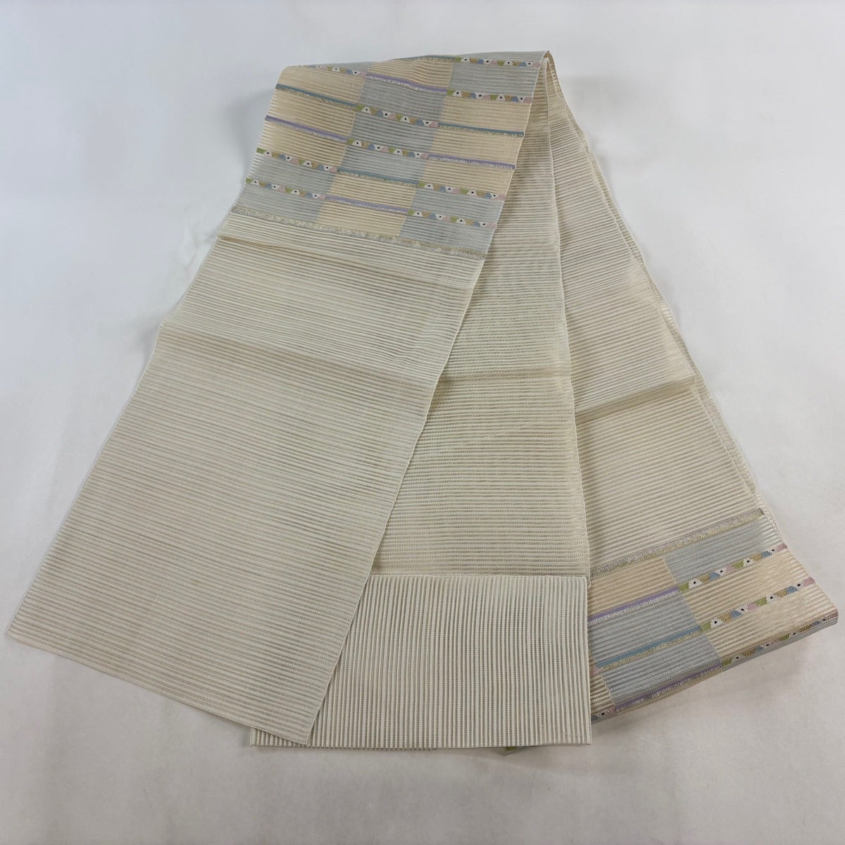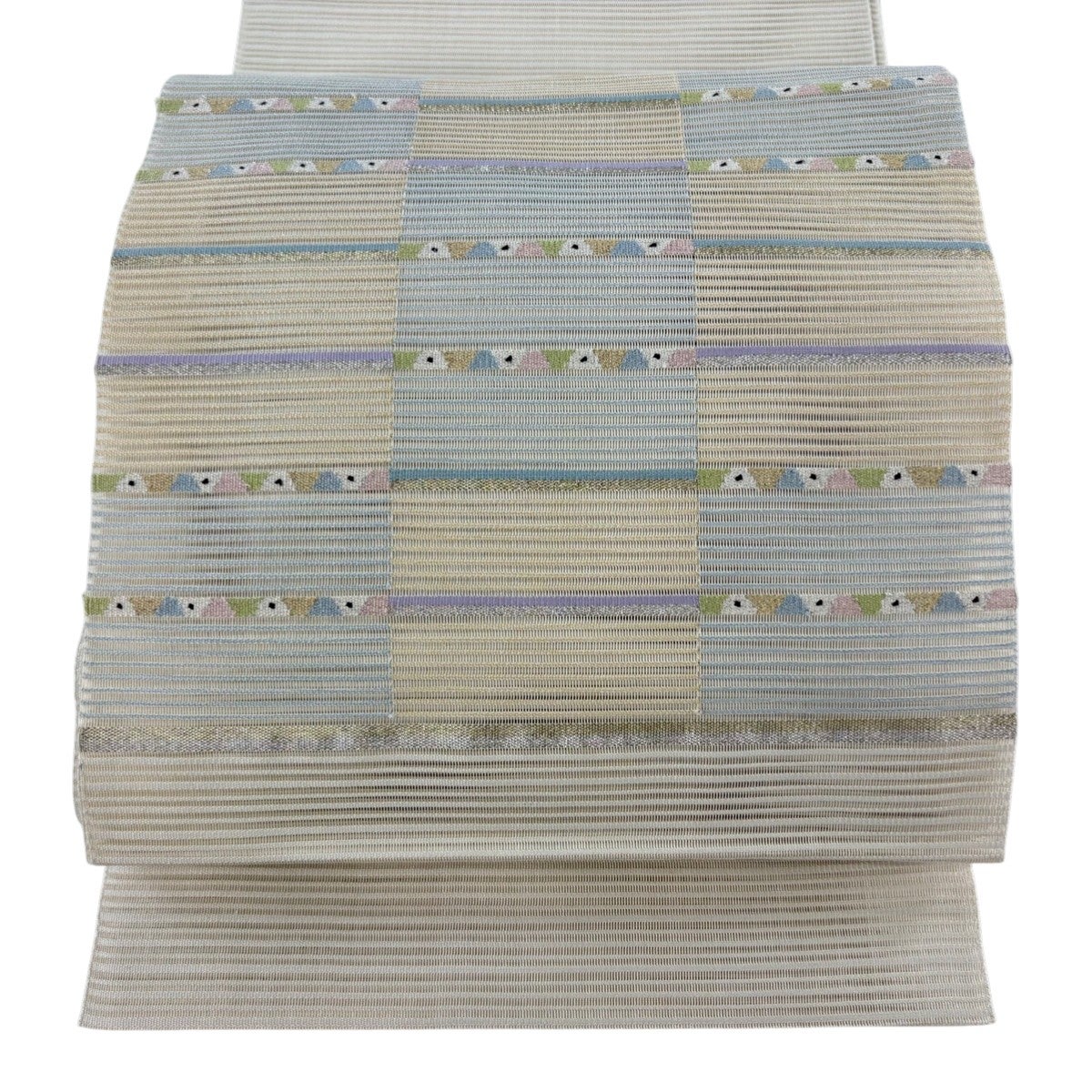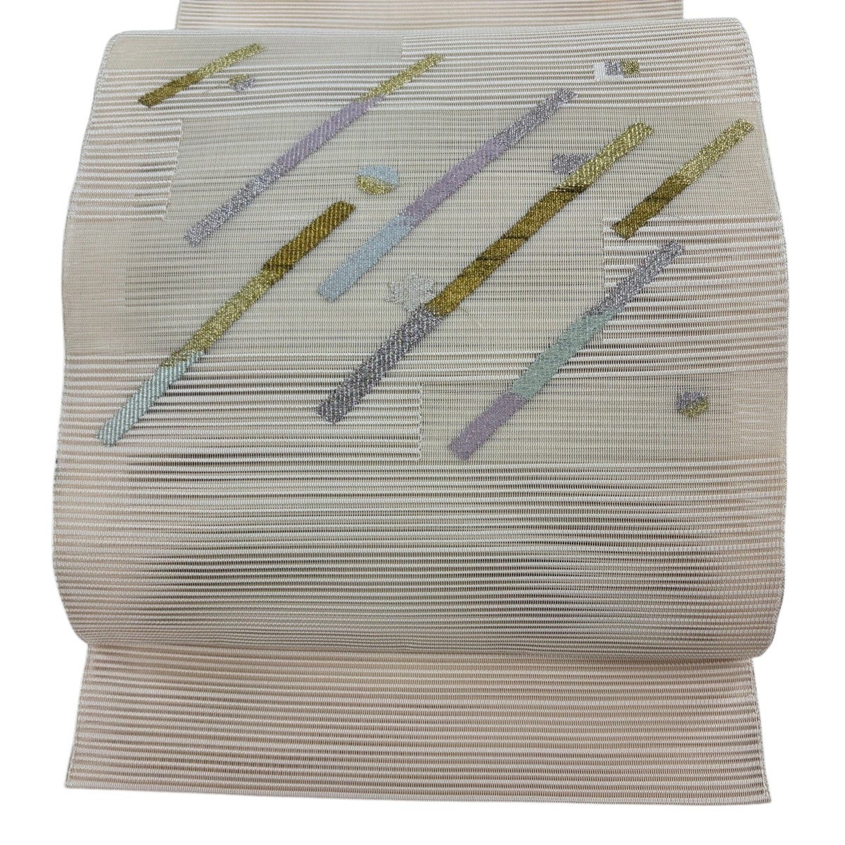 袋帯 秀品 夏帯 絽 七宝 縞 金銀糸 クリーム お太鼓柄 正絹