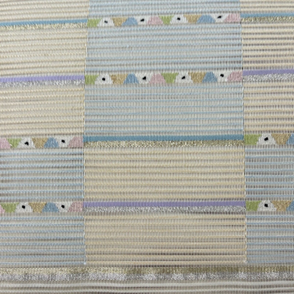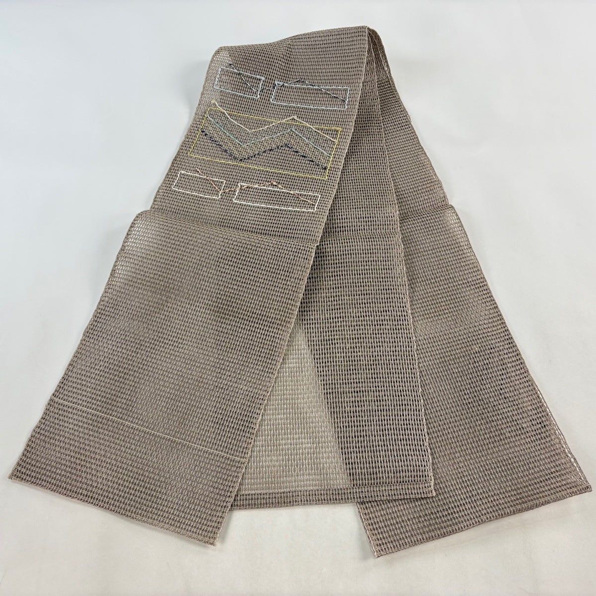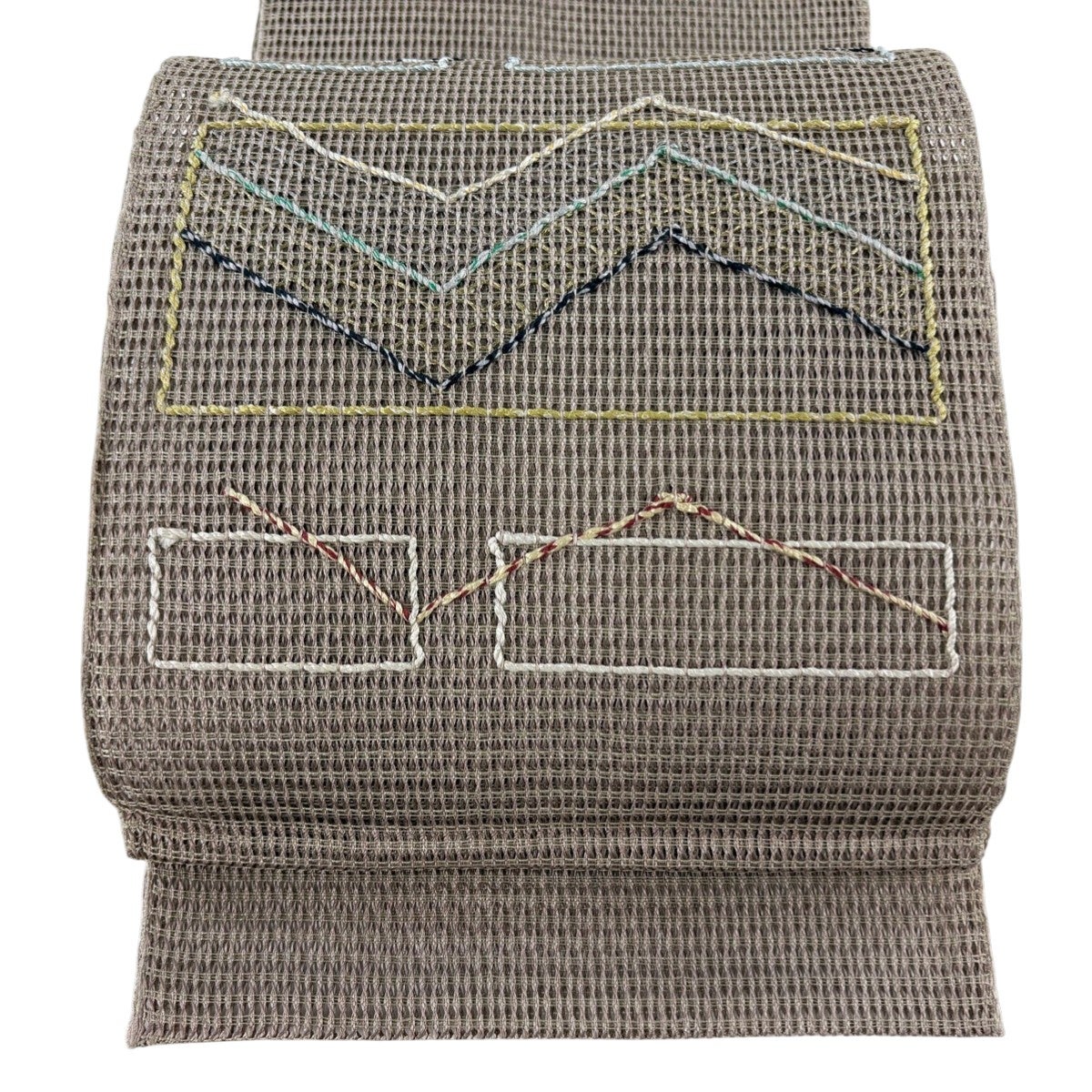【美品】 名古屋帯 秀品 夏帯 幾何学模様 薄茶色 正絹