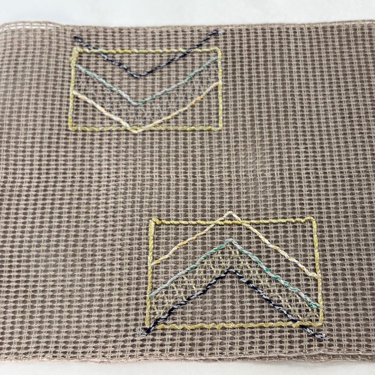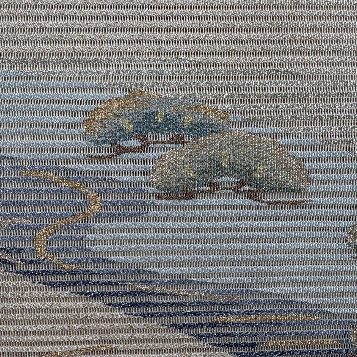 袋帯 秀品 幾何学模様 灰緑 正絹