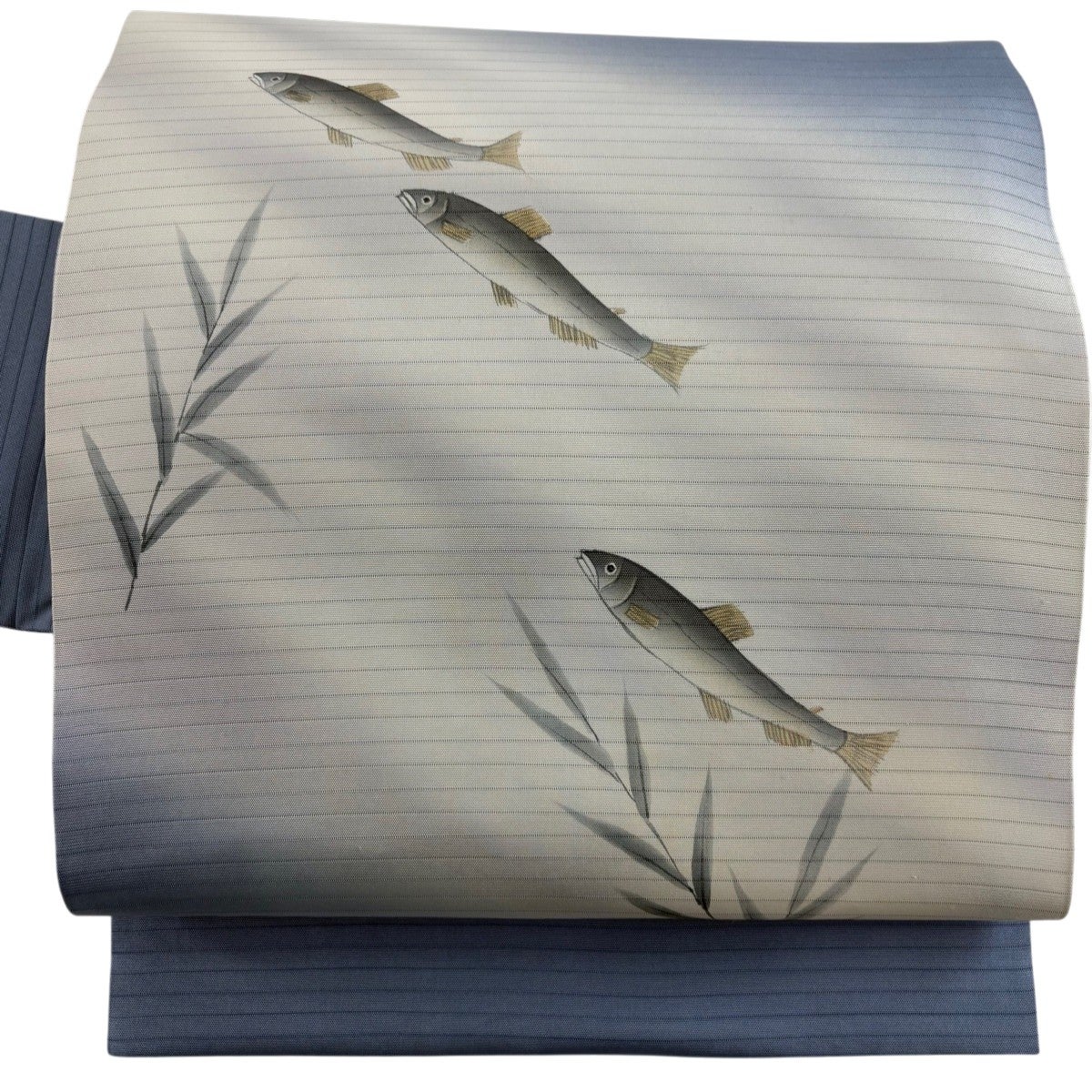 【美品】 名古屋帯 秀品 八寸名古屋帯 夏帯 灰色 正絹