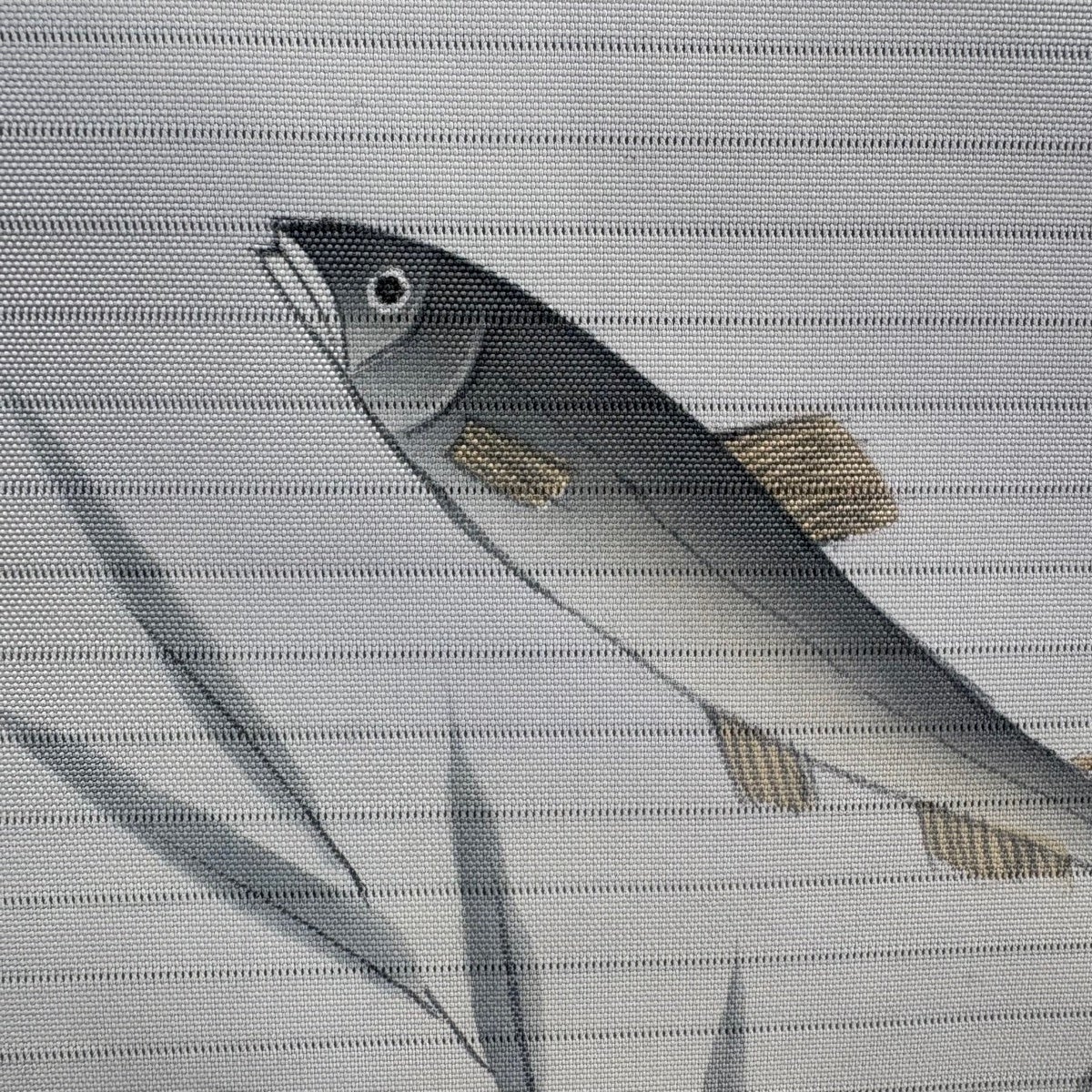 【美品】 名古屋帯 秀品 八寸名古屋帯 夏帯 幾何学模様 灰色 正絹