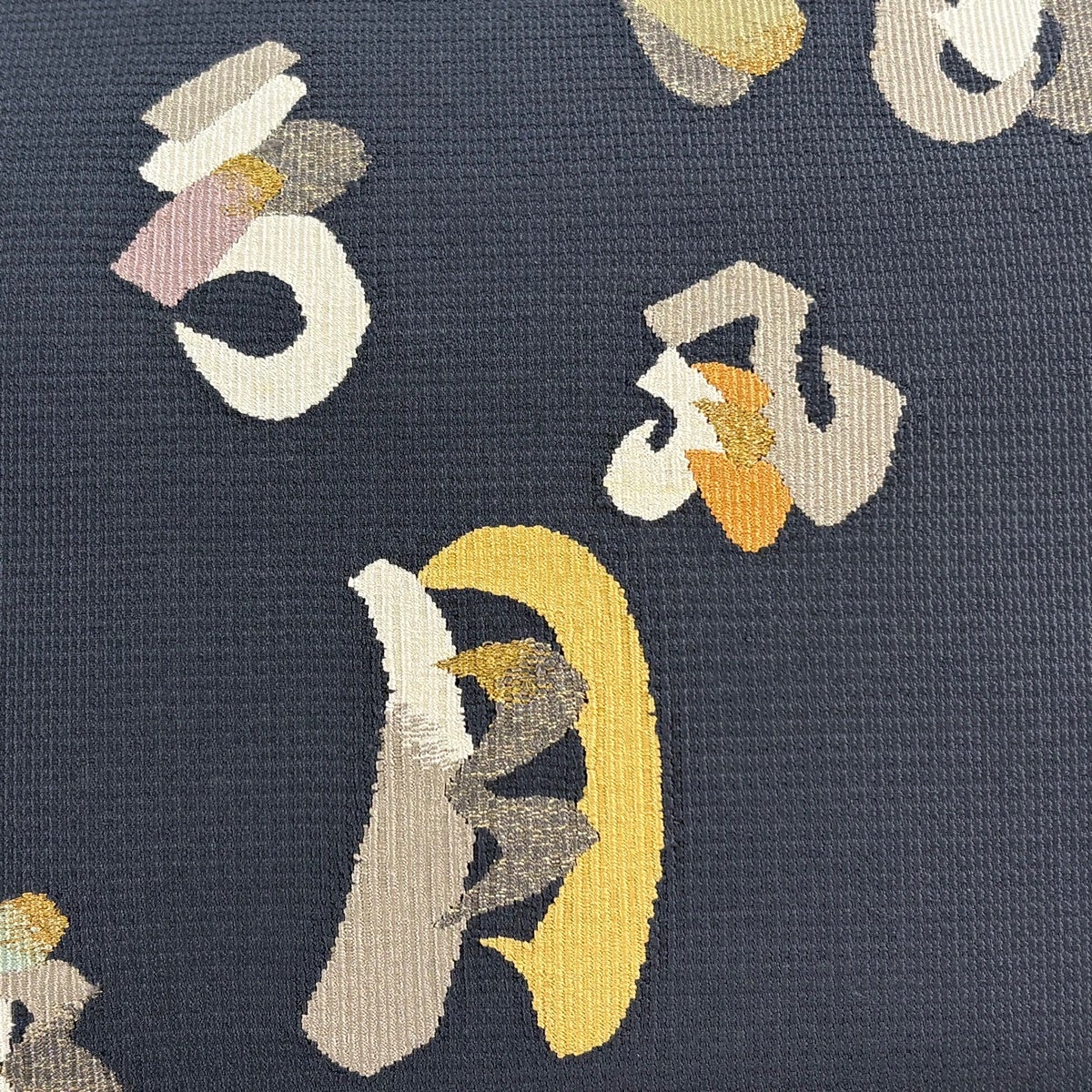 【美品】 袋帯 秀品 花器 幾何学模様 金糸 箔 黒 六通 正絹
